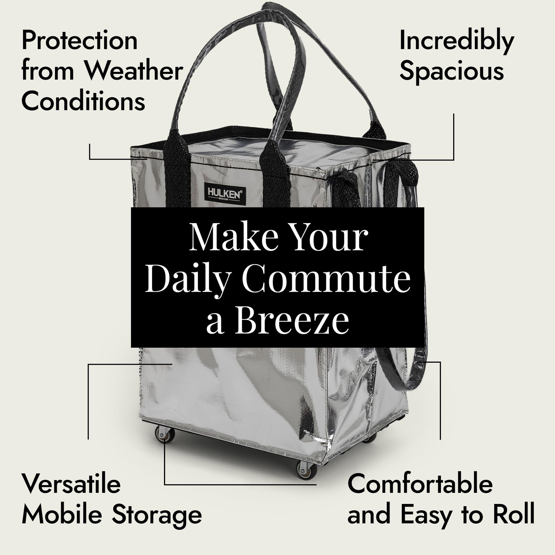 - DESIGNED FOR EFFORTLESS SCHLEPPING: Combining unbreakable ergonomic handles and multi-surface swivel wheels, the Hulken commuter tote is a rolling shopping bag that makes you feel limitless!
