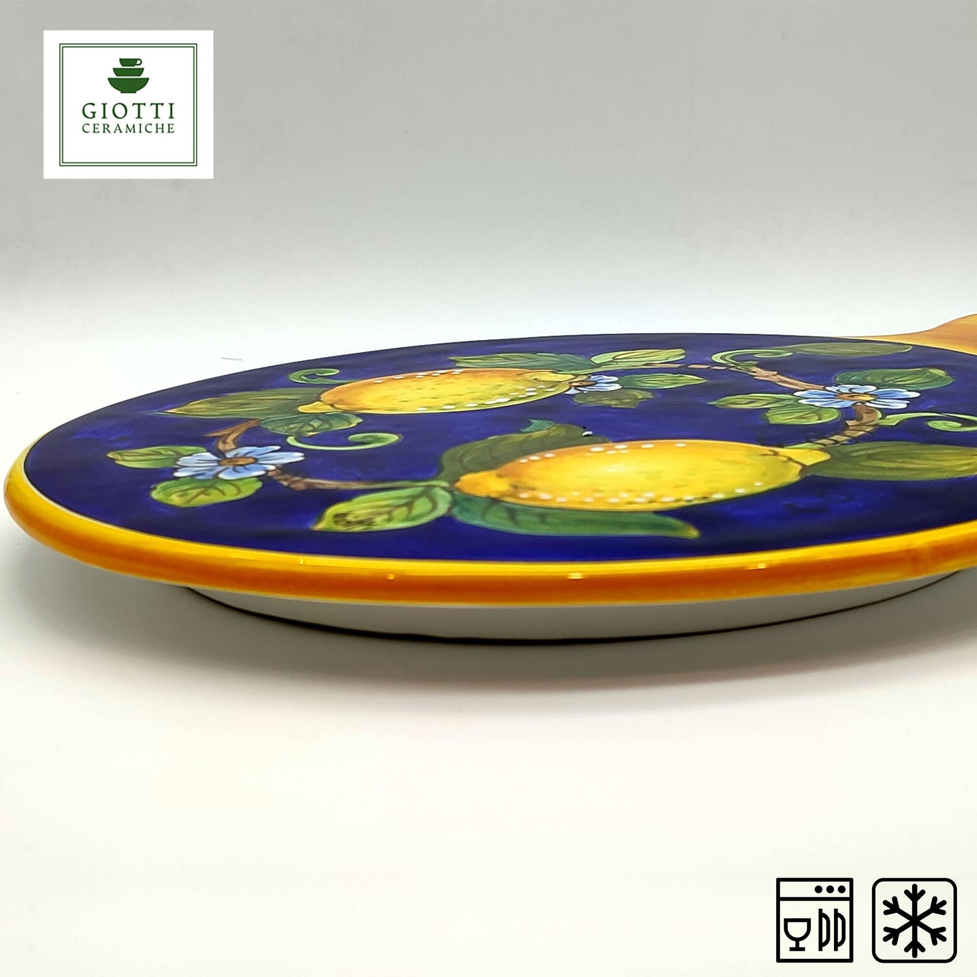 Italian Ceramic Cheese Board Lemon Blue - 10.38 inch Hand Painted Serving Platter for Kitchen - Made in ITALY Tuscany - Italian Pottery Serving Dish - Home Decor Ceramics Slate Cheese Tray