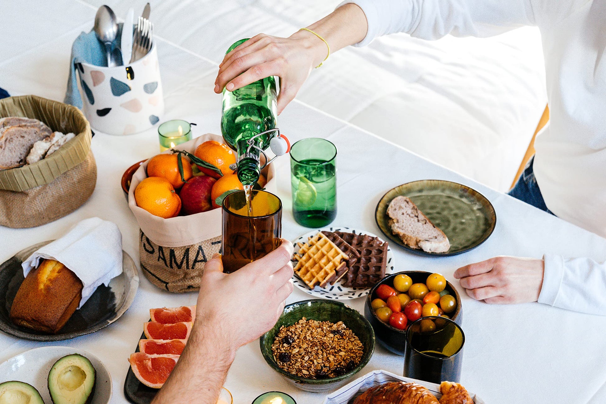- Tableware with smoothed rounded rim on each drinking glass for easy use in dishwasher.