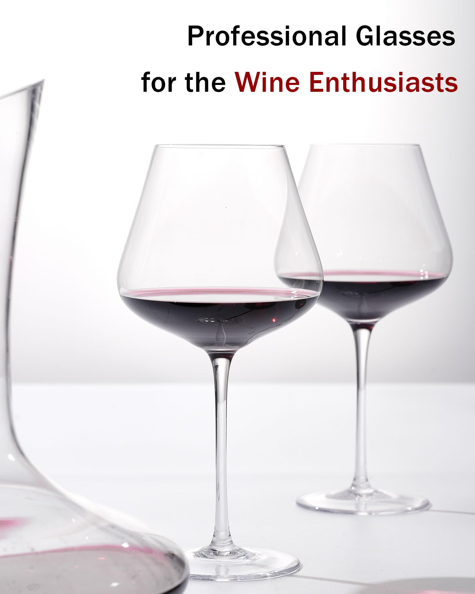 Hand Blown Italian Style Crystal Burgundy Wine Glasses - Lead-Free Premium Crystal Clear Glass - Set of 2-21 Ounce - Gift-Box for any Occasion