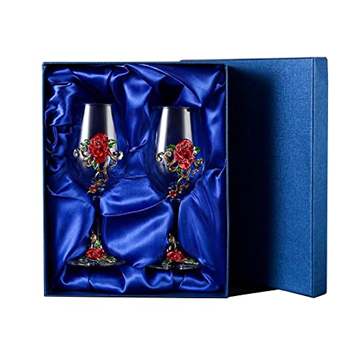 jessie Wine Glass Handmade Painted Enamel Flower Gin Glass Wine Glass Birthday Mothers Day Gifts (Red *2+gift box)