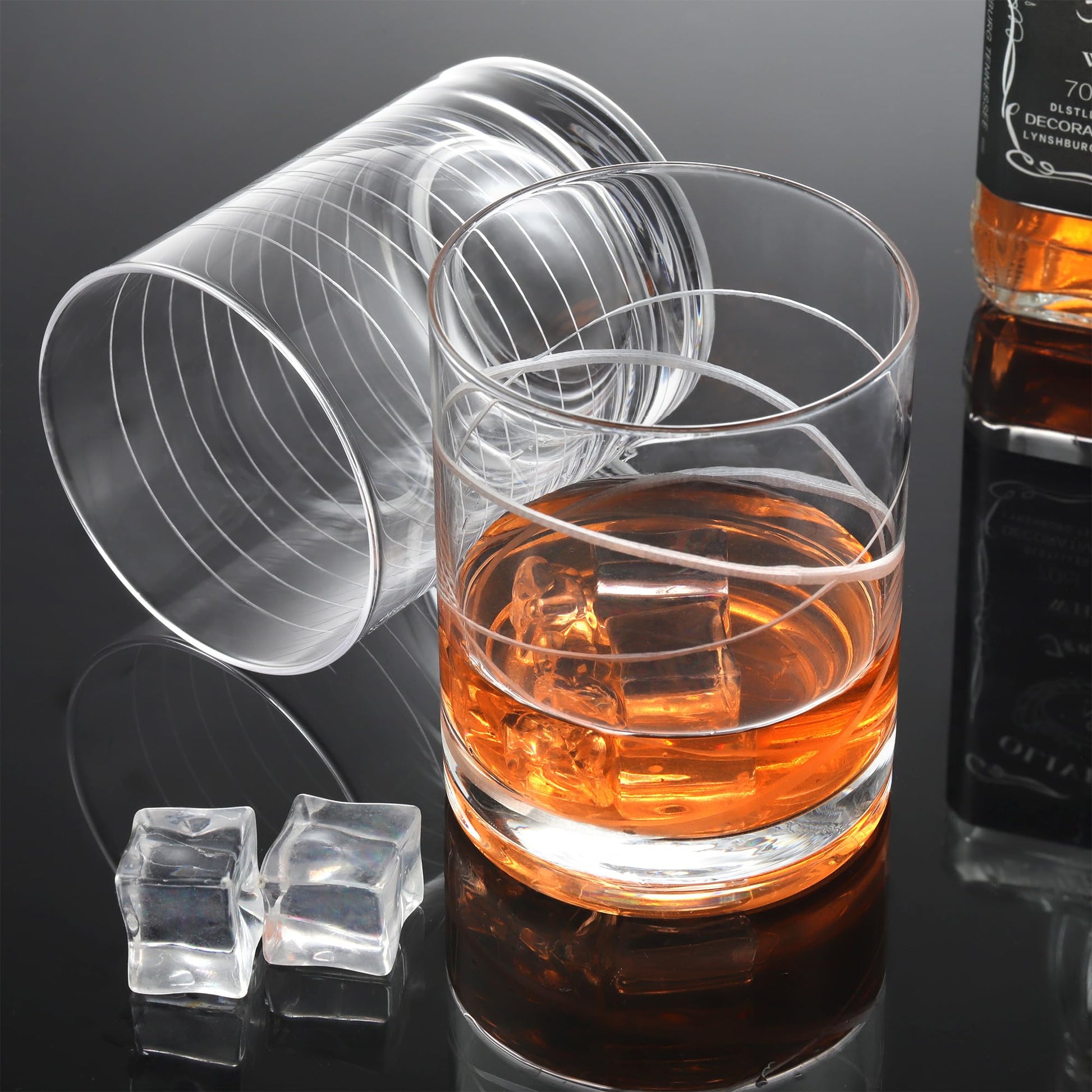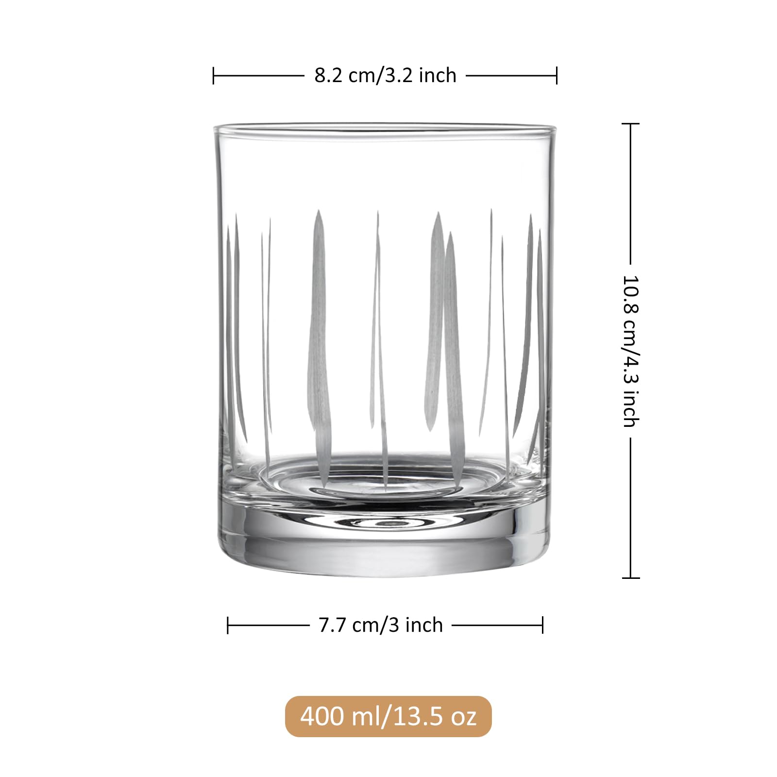 Joeyan Hand Blown Etched Whiskey Glasses,Old Fashioned Tumblers with Stripes Dots Pattern,Clear Carved Rocks Glasses,Scotch Bourbon Glassware for Party Anniversary,13.5 oz,Set of 4,Dishwasher Safe