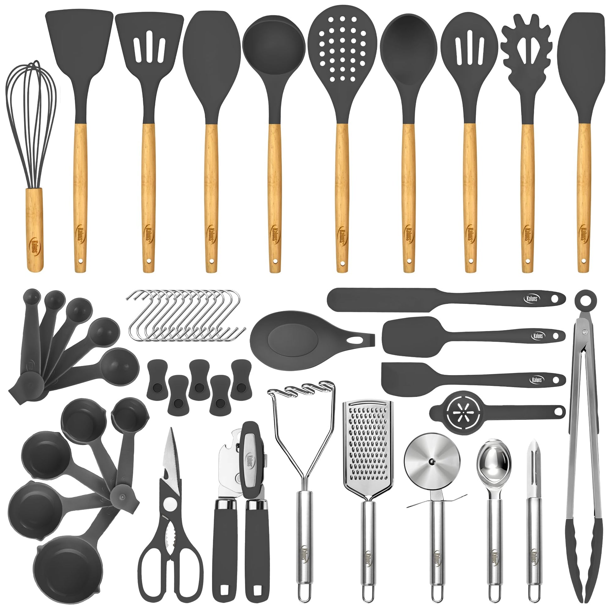50-Piece Silicone Kitchen Utensils Set - Mothers's Day Gifts for Moms and Wives and Dads and Husbands - Complete Kitchen Set 800°F Heat-Resistant Non-Stick Premium Silicone Cooking Utensils with Wooden Handles