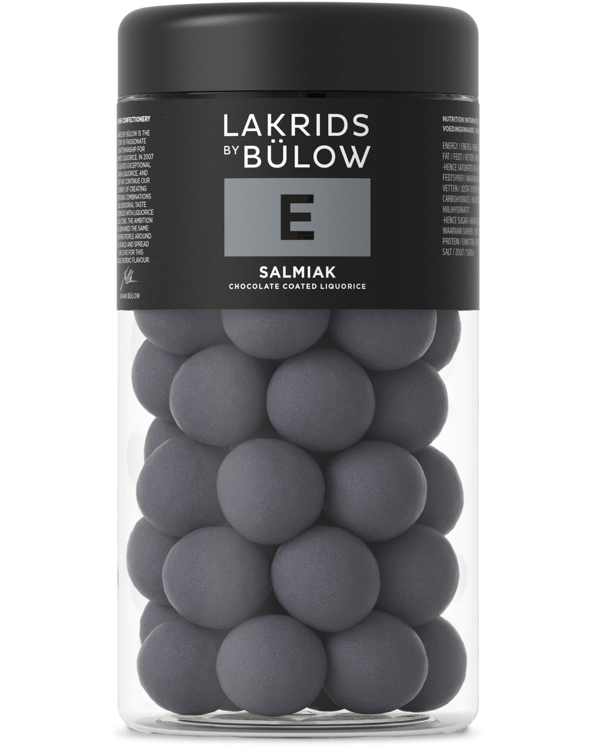 LAKRIDS BY BÜLOW - E - Salmiak - 10.4 Oz. - Chocolate Coated Gourmet Licorice - Authentic Scandinavian Candy Produced in Denmark