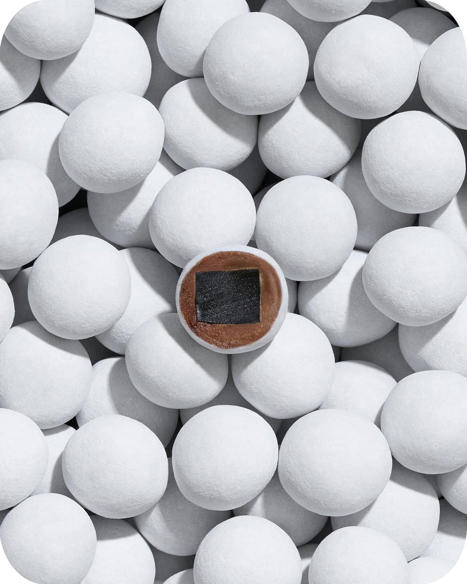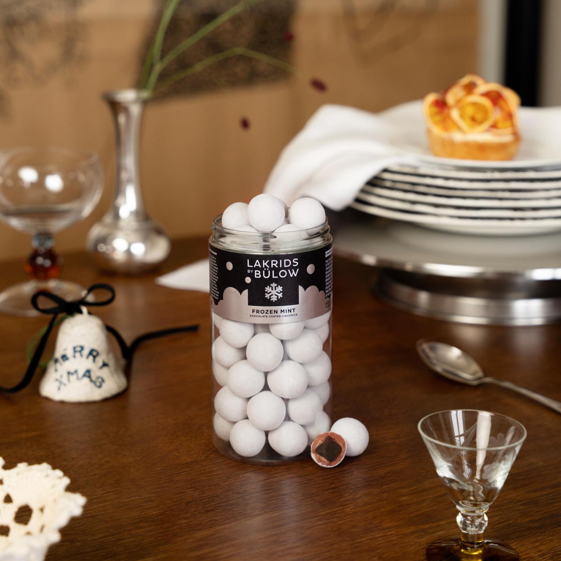 - FROZEN MINT - Indulge in sweet licorice, smooth milk chocolate and a hint of mint. A crunchy coating of white powdered sugar is reminiscent of white, freshly fallen snow.