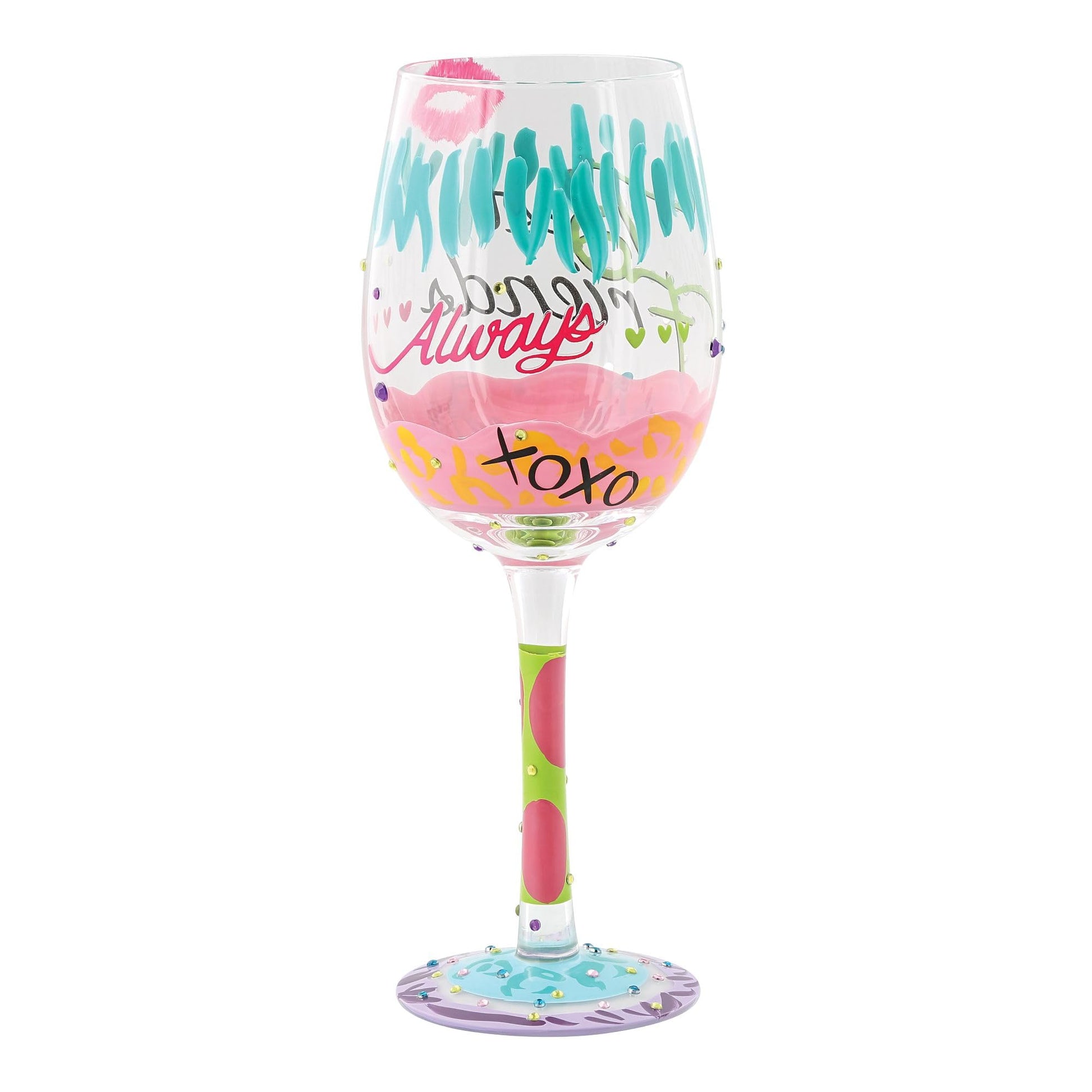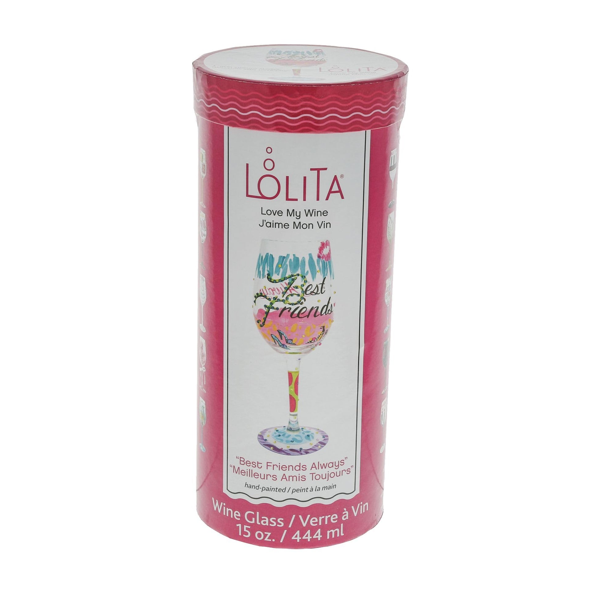 Lolita Best Friends Always Artisan Painted Wine Glass Gift