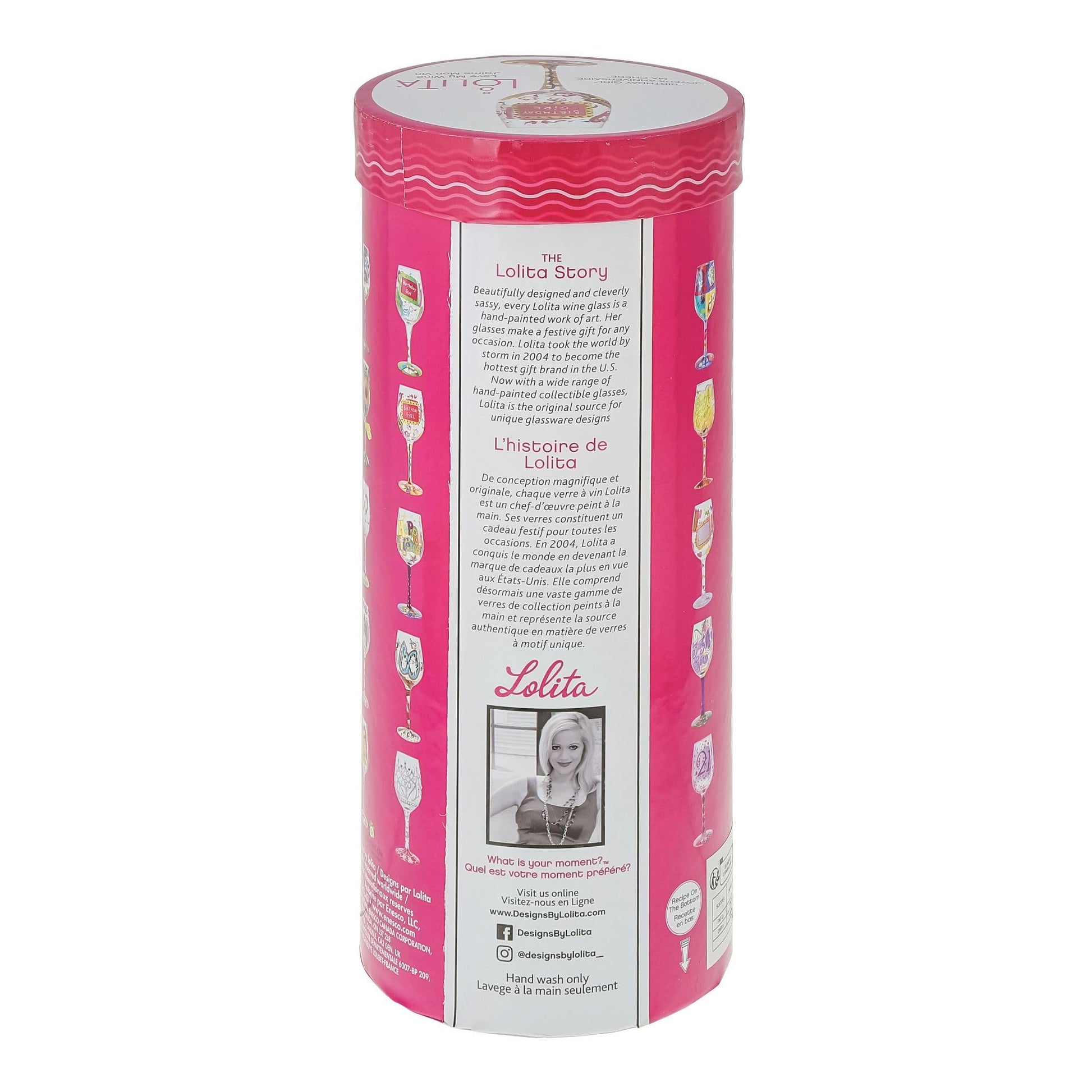 Details: Lolita glasses combine hand painted accents with sassy messages that help you celebrate any occasion in style. Arrives in a beautiful gift box with a unique cocktail recipe painted under the base of the glass. Made from artisan blown glass. 15-ounce capacity. Hand wash only. About Us: Enesco is committed to bringing joy every day. The premier global destination for high-quality giftware, plush, and home décor, our prestigious family of brands includes: Gund, Department 56 Village, Gregg Gift, Foundations, Jim Shore Heartwood Creek, Disney Traditions by Jim Shore, Walt Disney Archives Collection, Disney Showcase Collection, Disney by Britto, Pusheen, Designs by Lolita, Our Name Is Mud, and many more.