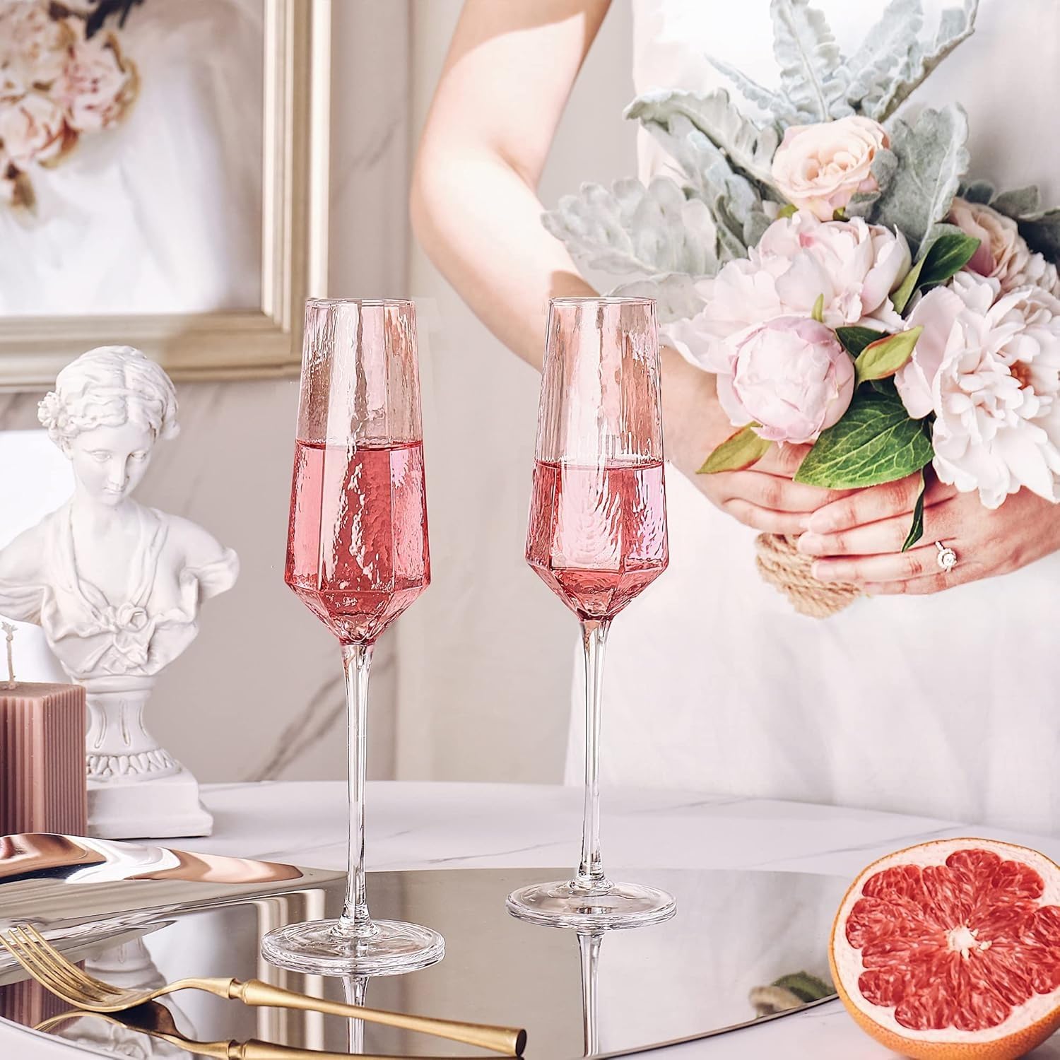 Luminthra 8 Oz. Blue Crystal Champagne Flutes, Elegant Flutes Set of 2 for Weddings, Anniversaries, and Christmas (Blue) (Pink,2 count)
