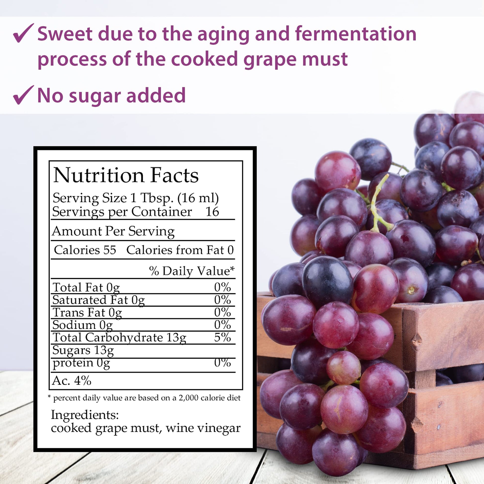 - 【No Artificial Ingredients】The secret to our great taste is simplicity, this balsamic vinegar has two ingredients: cooked grapes must and wine vinegar, which means there are no thickening agents, no caramel, no added sugar, no added flavors, no artificial additives, no colorants, and no preservatives.