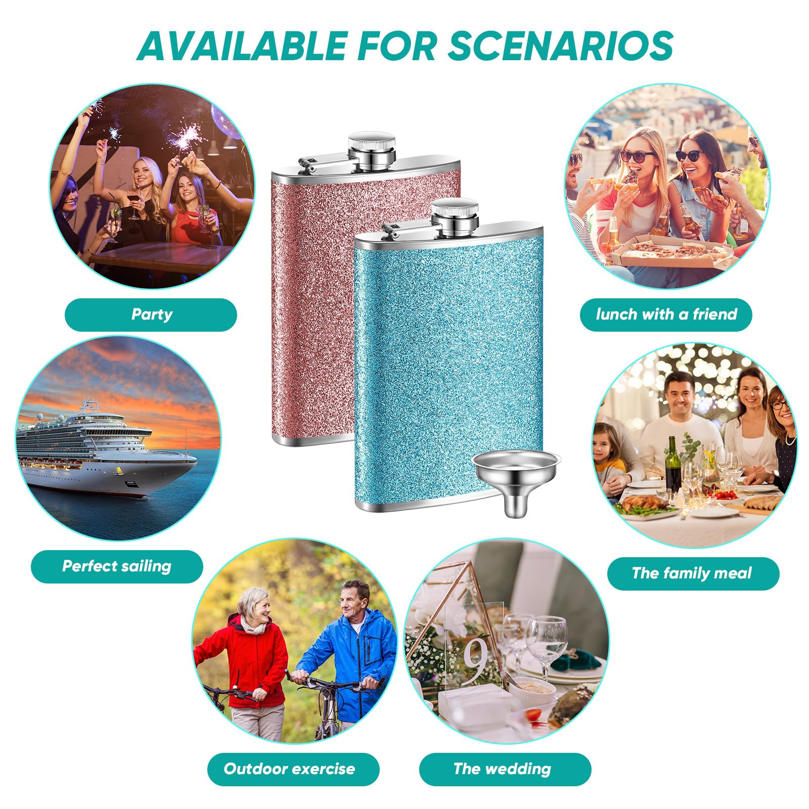 - Beautiful and Stylish Colors: flasks are not only fashionable, but also with a shiny glitter finish, adding a charming touch, in line with the aesthetic standards of people of different ages, and will win the favor of most ladies and women