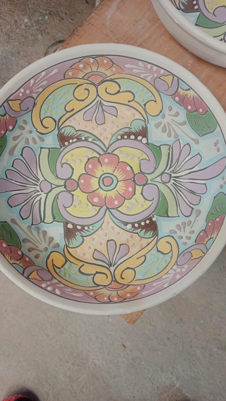 Details: Introduce the vibrant essence of authentic Mexican artistry to your home with our Large Serving Bowl - a masterpiece that seamlessly blends traditional craftsmanship with modern functionality. Each bowl is handcrafted in small family workshops in Mexico, where skilled artisans continue a centuries-old tradition that makes every piece unique. Our colorful Mexican pottery begins its journey in traditional workshops, where local artisans shape premium clay into these generous serving vessels. Each bowl undergoes an intricate 30-day creation process, starting with careful molding and followed by our signature hand-painting technique using lead-free, non-toxic glazes. These aren't mass-produced overseas - they're authentic Mexican art made with pride by skilled craftspeople. Perfect for both everyday use and special occasions, this versatile piece works beautifully as a pasta serving bowl, fruit bowl, or party platter. Its substantial size and weight make it ideal for serving family-style meals, entertaining guests, or as a stunning decorative piece for your kitchen counter. Whether you're hosting a casual family dinner or a special celebration, this bowl transitions seamlessly from preparation to presentation. The bowl's generous 10.75-inch diameter and 3.12-inch height provide ample space for serving everything from colorful salads to family-style pasta dishes. Its high heat resistance up to 380Β°F means you can use it for baking and serving hot dishes. The premium ceramic construction ensures excellent heat retention while being completely food-safe. What sets our Talavera pottery apart is the intricate hand-painted designs that make each piece truly unique.These bowls aren't just serving dishes - they're conversation pieces that bring the warmth and artistry of Mexico into your home.