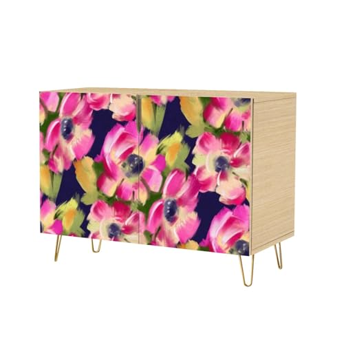 Mid-Century Sideboard Buffet Kitchen Storage Cabinet with 2 Doors Seamless pattern bright tropical flowers for summer fabrics Acrylic Cupboard Console Table Bar Cabinet for Dining Room Hallway