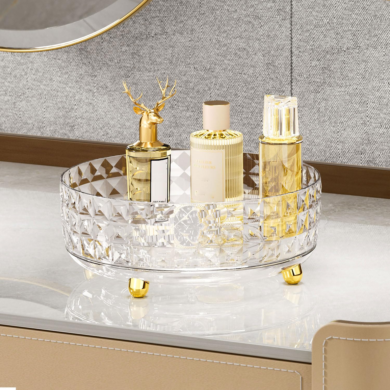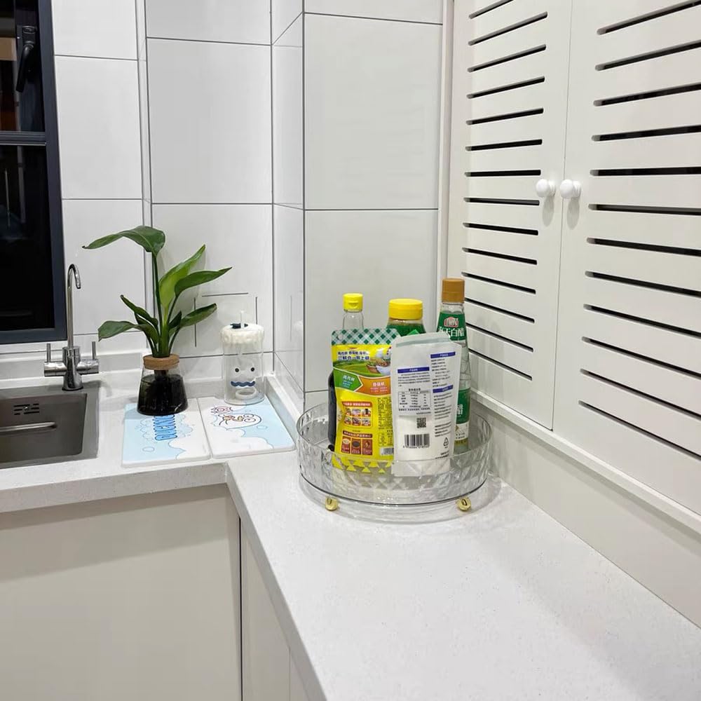 - [ Perfect for Various Places ] The clear plastic clear lazy susan organizer is the perfect rotating organizer for table tops, kitchen countertops, under the sink, cabinet wardrobes, pantries, refrigerators, bathroom cabinet organizer, vanity organizers and storage, offices and more.