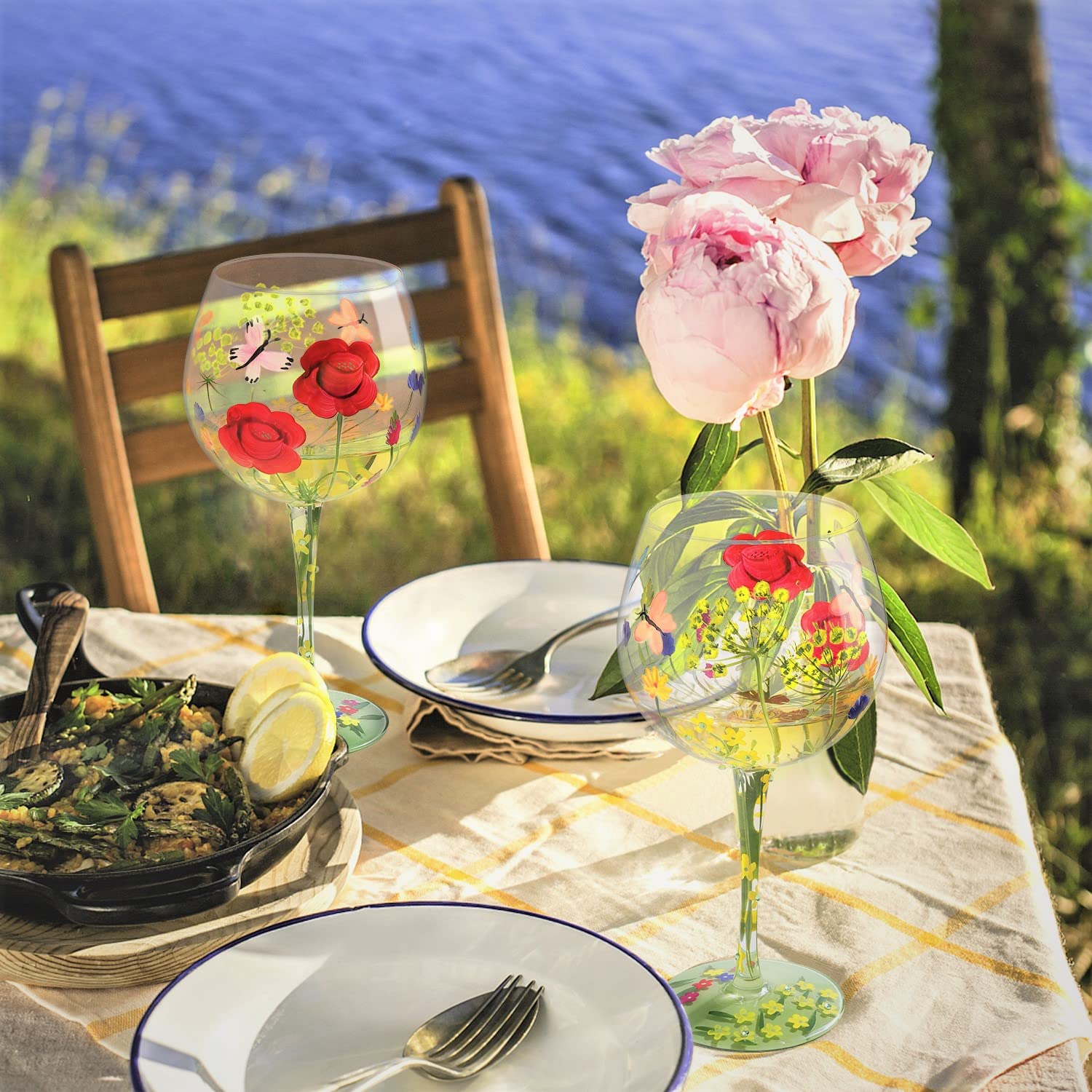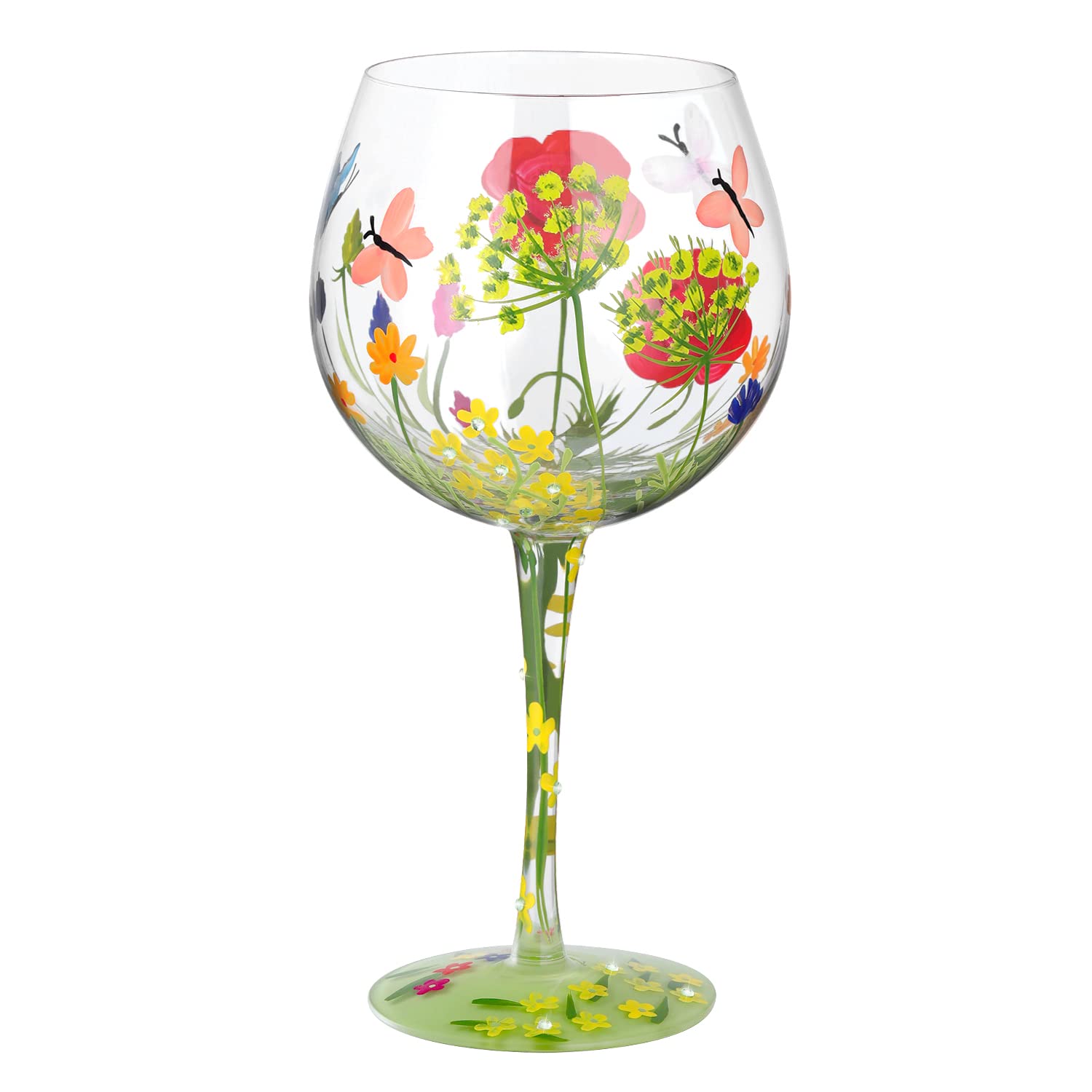 NymphFable Flower Wine Glass 100% Hand Painted Gin Balloon Wine Glass 20oz Personalised Birthday Gift for Women Friend