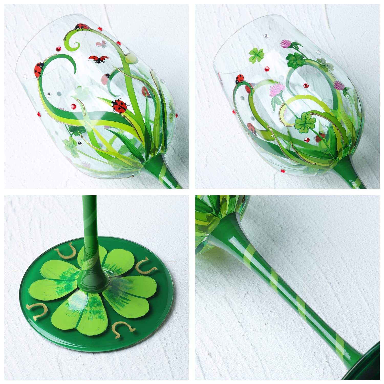 - Multi-Crafted: In order to enrich the beauty and refinement of the design, multiple processes such as hand-painted and a little stickers and artificial point rhinestones as well as other more processes were adopted on this glass. So be careful, hand-wash only.