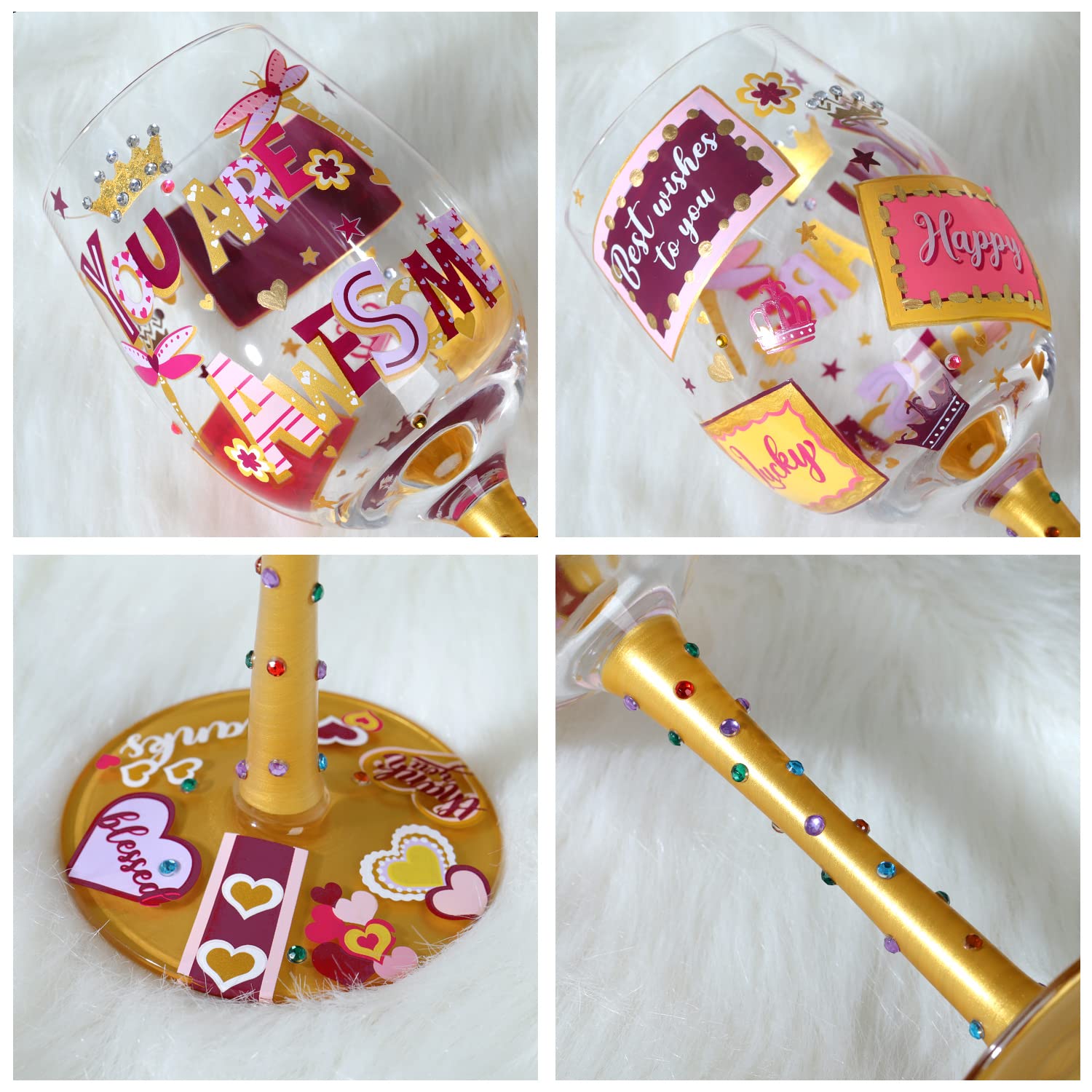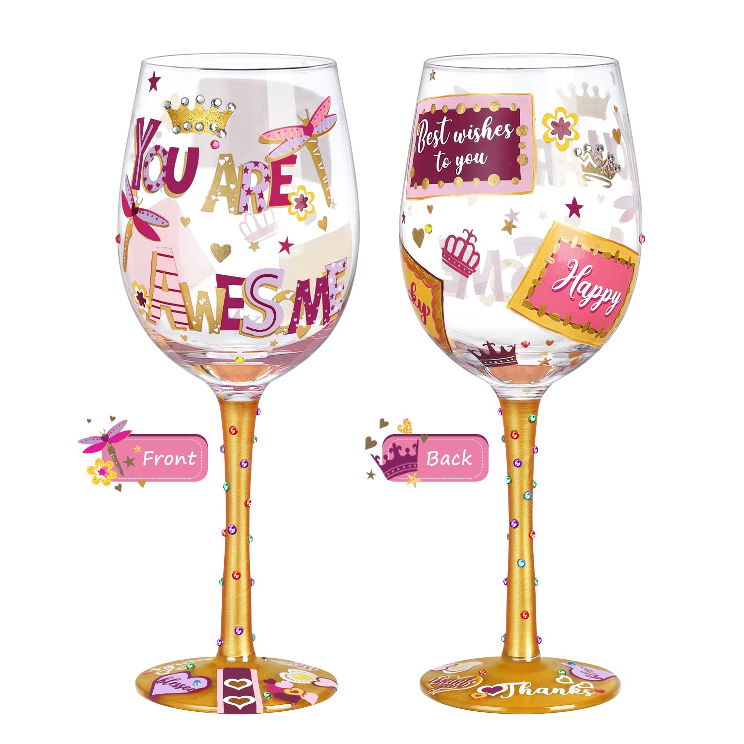 NymphFable You are Awesome gifts for women Thank You Gift, Hand Painted Wine Glasses Decorative Wine Glasses, Birthday Gift for Mom, Teacher, Friend 15oz