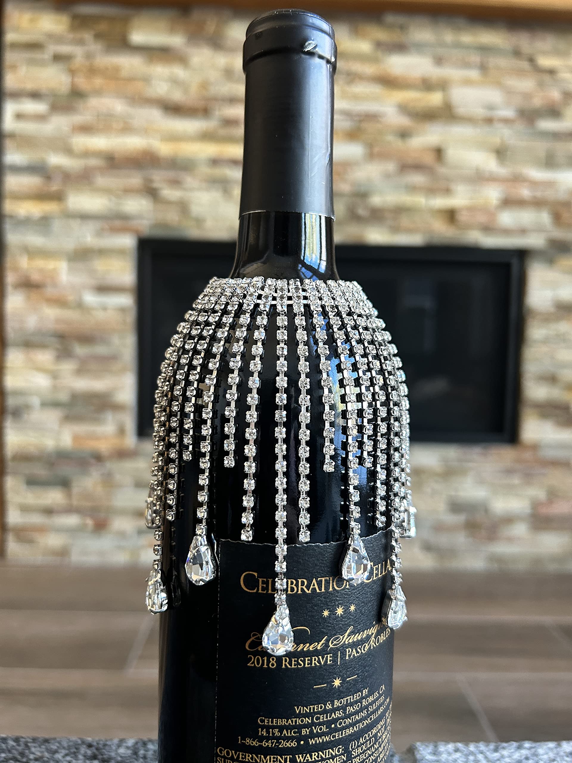 Add some sparkle to your bottle! These gorgeous rhinestone bling bottle jewelry charms will add elegance to any party, wedding or holiday Fits most oil, liquor and wine bottles Exact dimensions vary These are so sparkle in person, great for weddings, holiday parties, bachelorette parties, or just for show Other styles to choose in my store Bottles not included