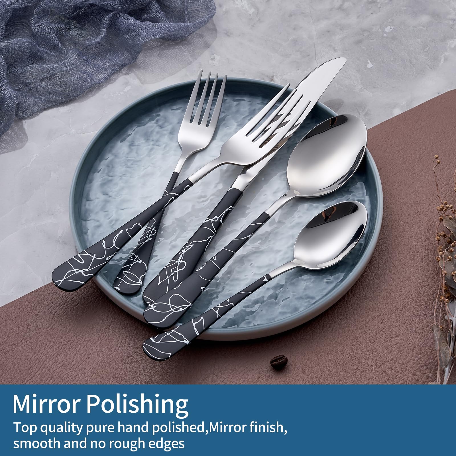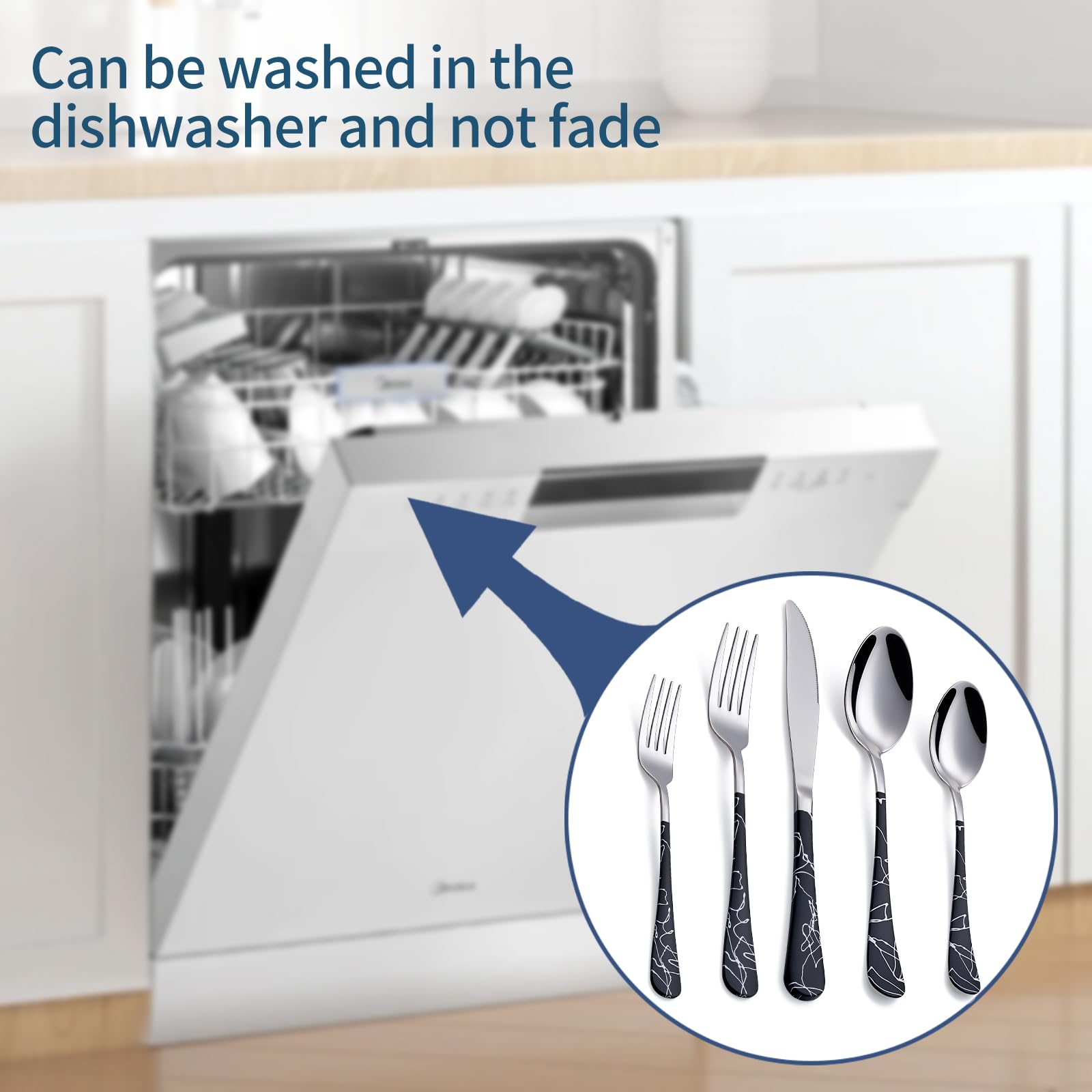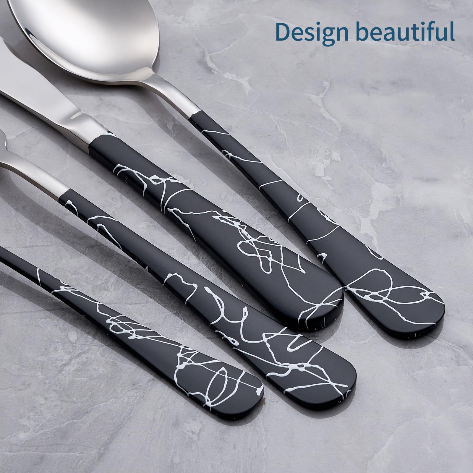 Black Cracks 20-Piece Silverware Set 18/0 Stainless Steel Silverware Set Cutlery Black Set Service for 4 Dinner Knives Forks Spoons Set Flatware Set Finish Dishwasher Safe