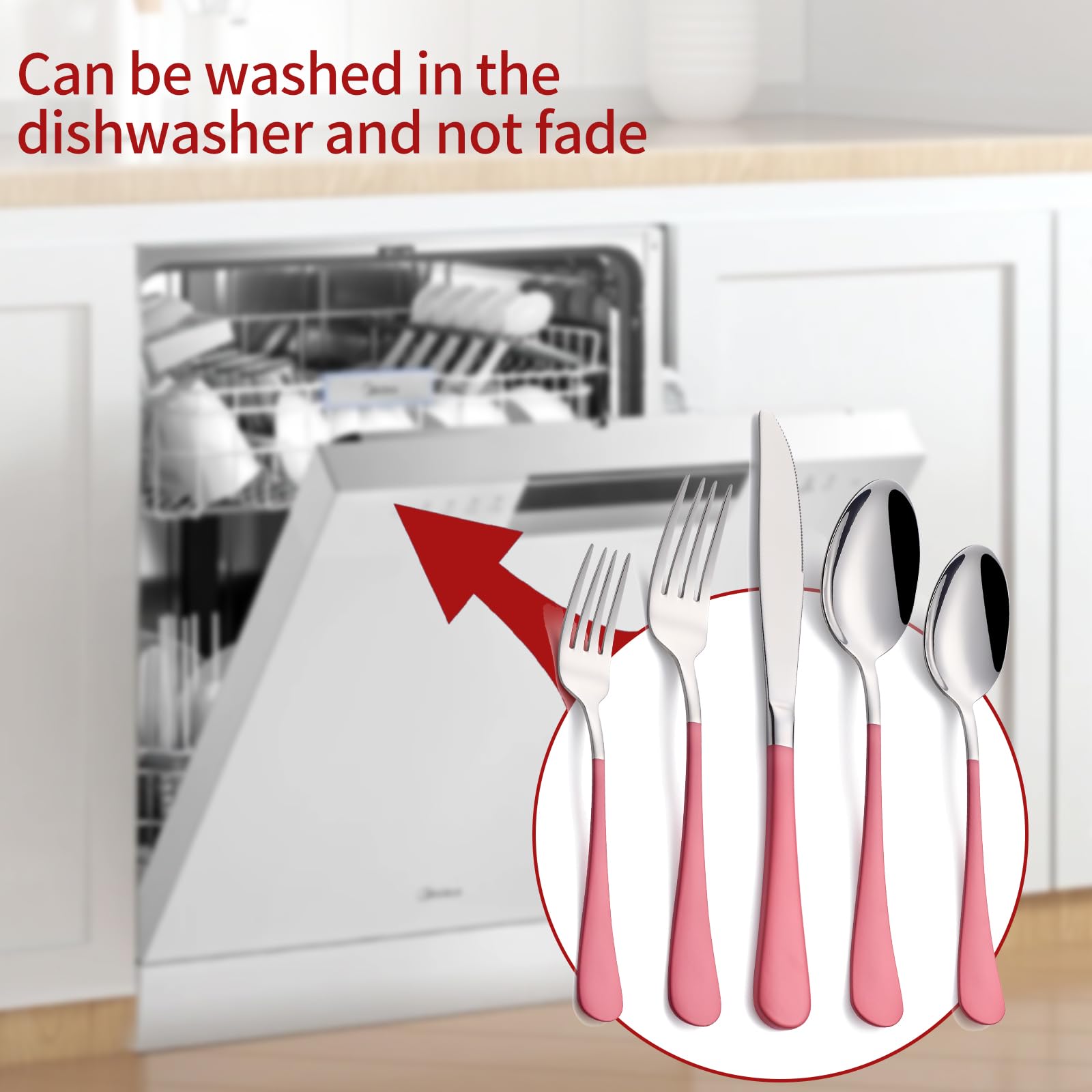 Cotton Candy Pink 20-Piece Silverware Set 18/0 Stainless Steel Flatware Pink Handle Cutlery Set Service for 4 Dinner Knives Forks Spoons Set Mirror Finish Dishwasher Saf