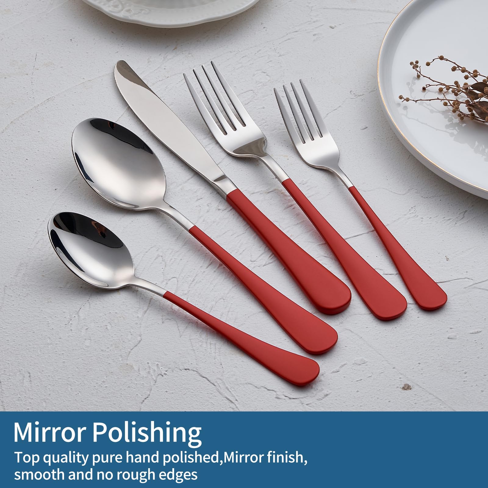 Red 20-Piece Silverware Set 18/0 Stainless Steel Flatware Red Handle Cutlery Set Service for 4 Fork Knife Spoon Set Mirror Finish Dishwasher Safe