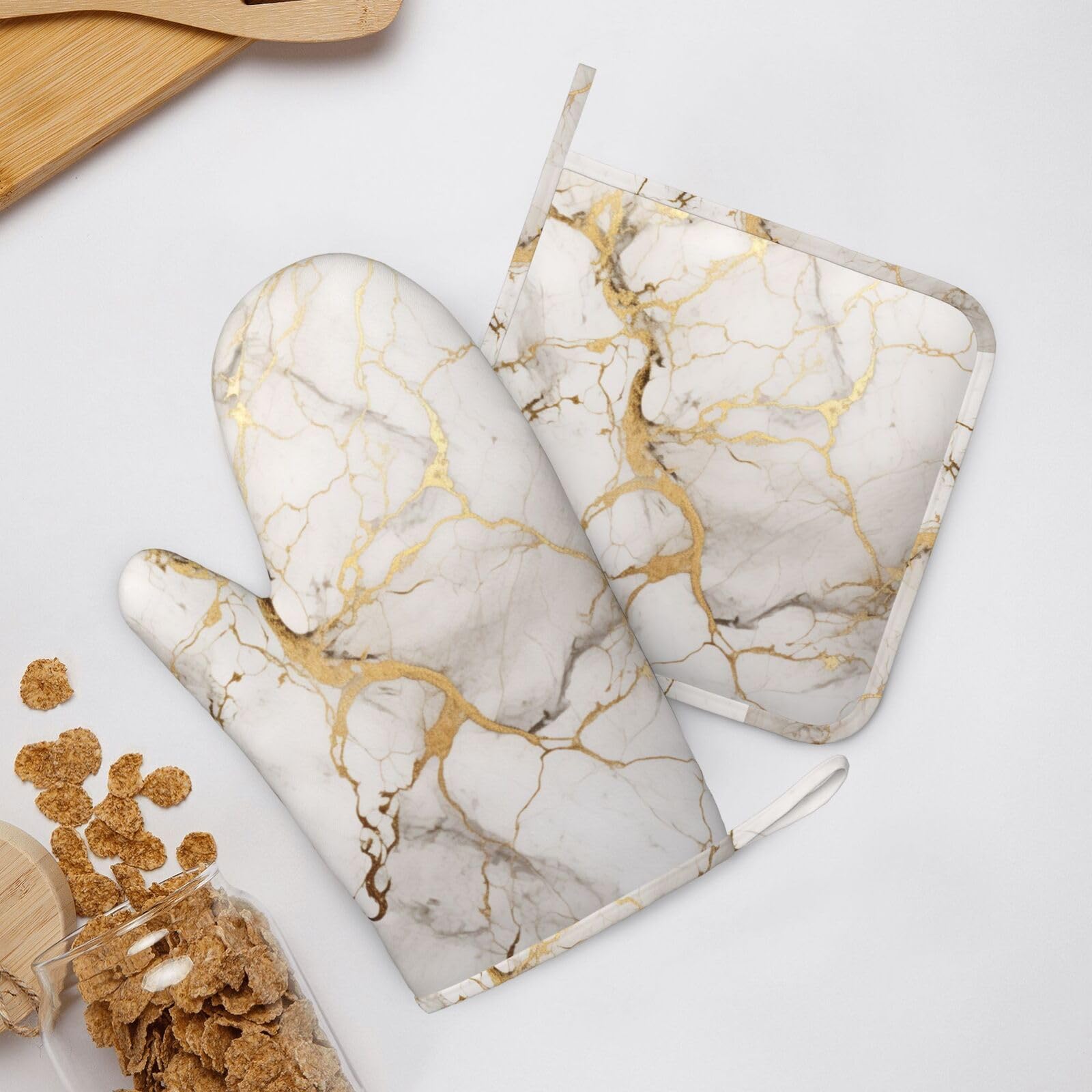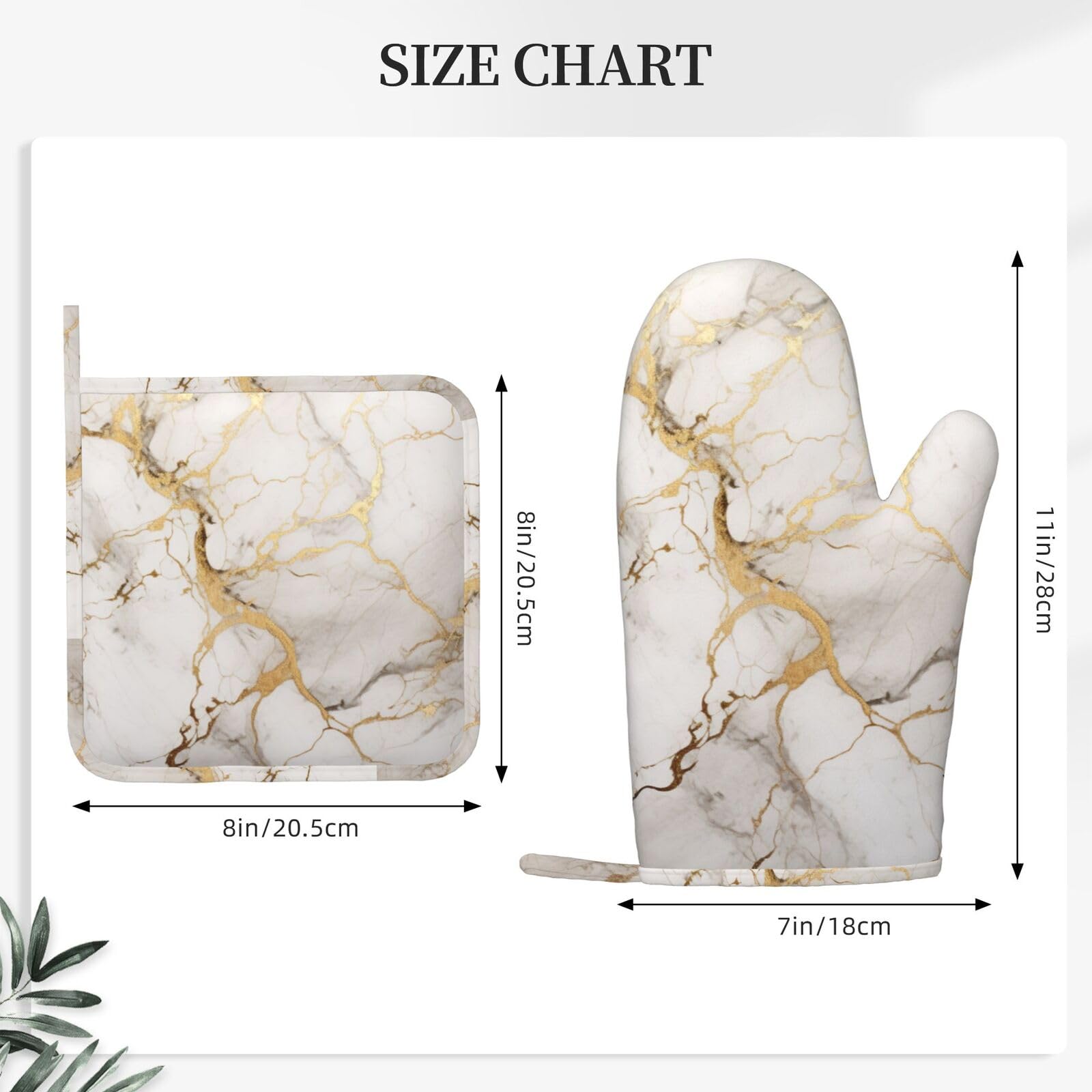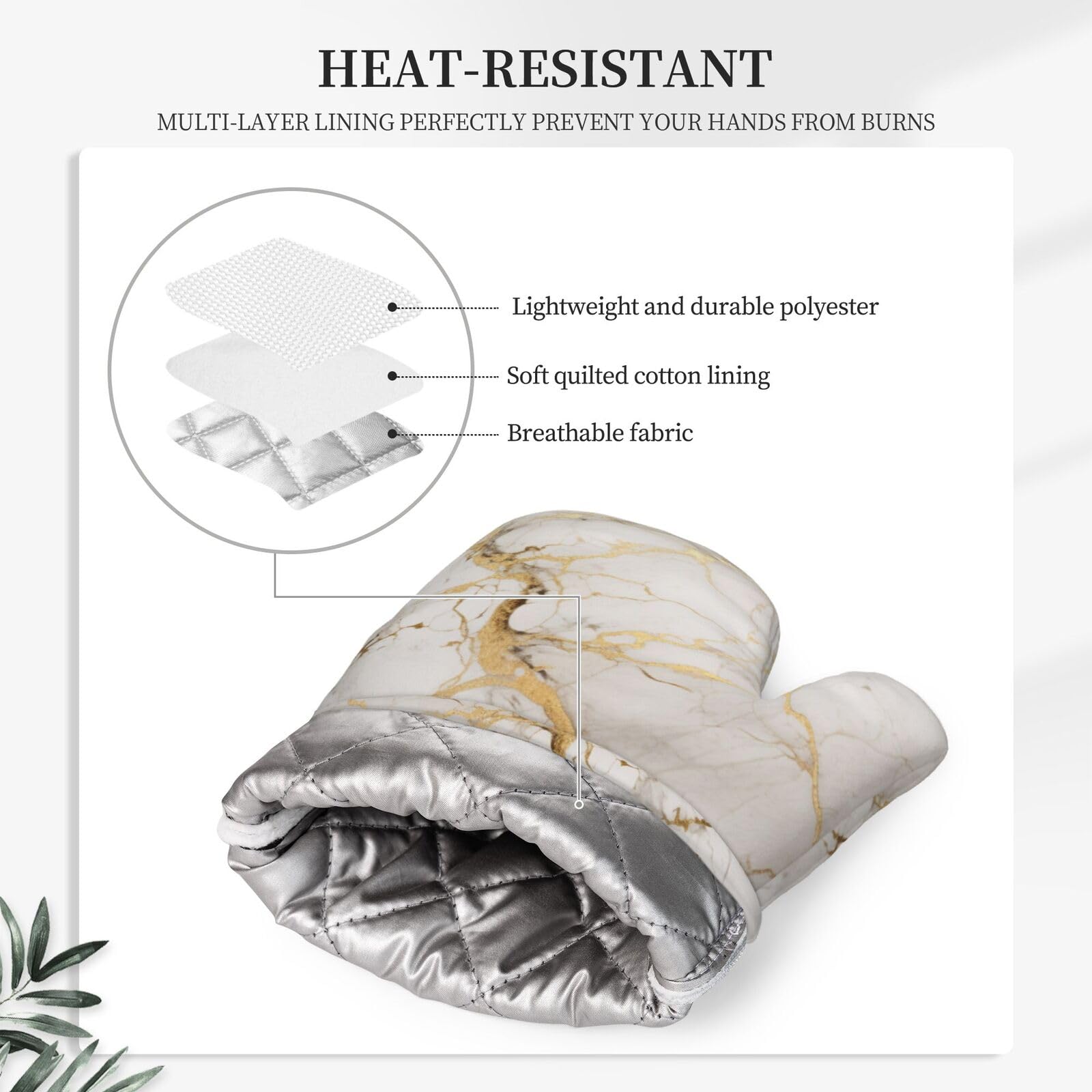 Oven Mitts and Pot Holders Marble Gray Gold White Silicone Kitchen Accessories Set of 4 Heat Resistant Long Gloves Potholder Non-Slip Grip for Chef Cooking Baking Grilling BBQ