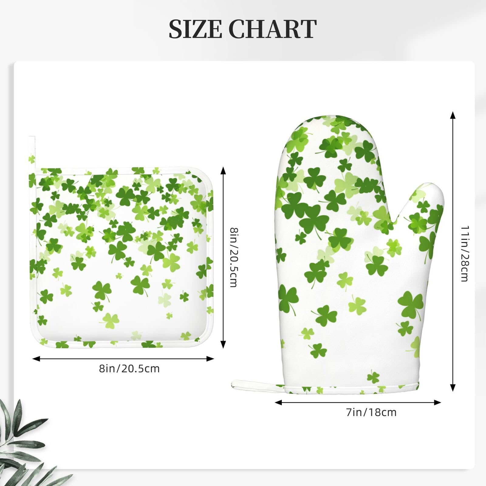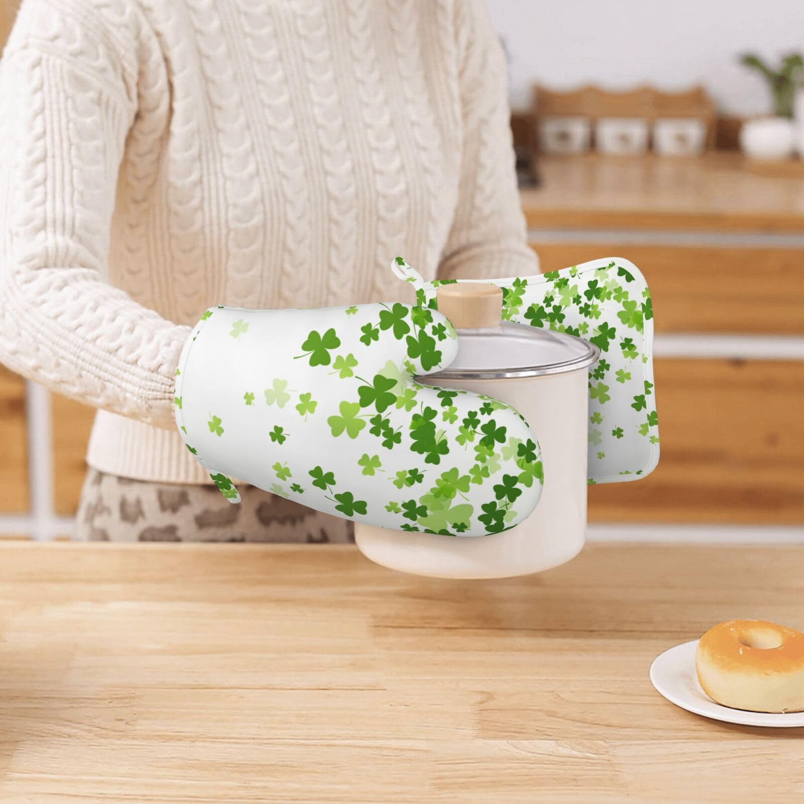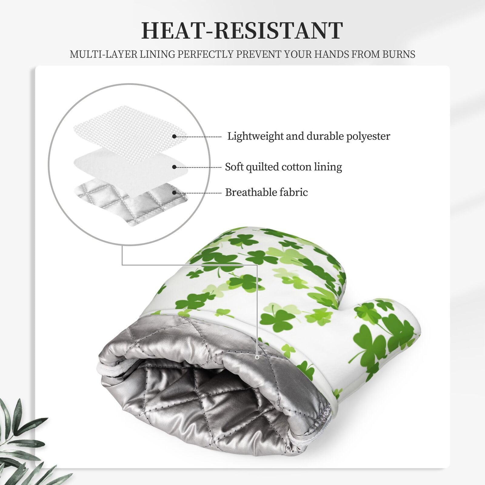 Oven Mitts and Pot Holders St. Patrick's Day Shamrock Clover Silicone Kitchen Accessories Set of 4 Heat Resistant Long Gloves Potholder Non-Slip Grip for Chef Cooking Baking Grilling BBQ