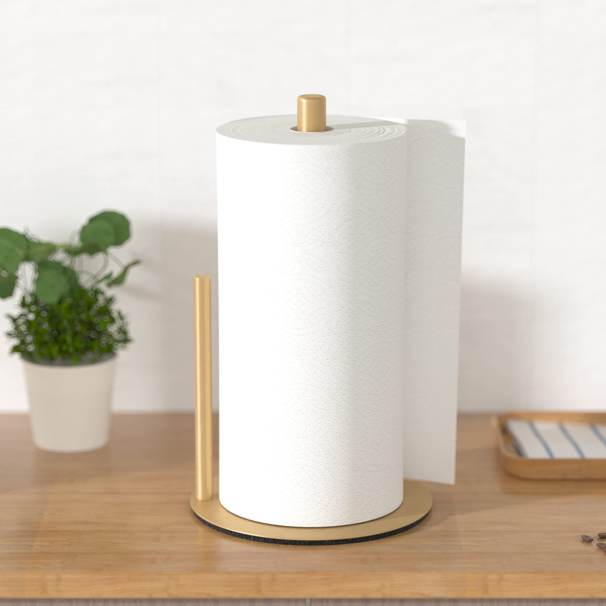 Paper Towel Holder Gold Kitchen Roll Holder, Premium Stainless Steel Paper Towel Holder for Kitchen Roll Organize, Countertop Roll Dispenser with Weighted Base