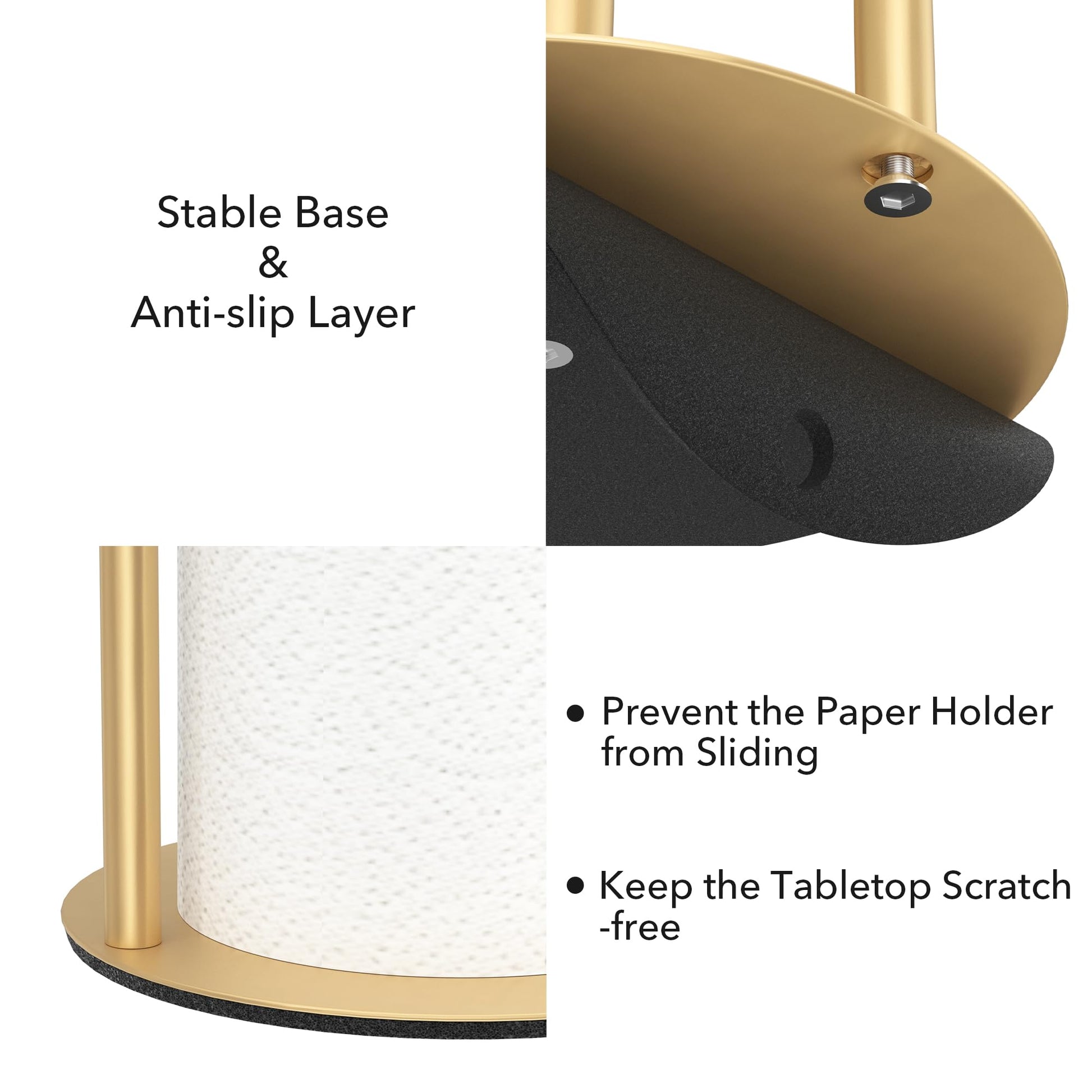 - Stable Base: The paper towel holder has a weighted base, can help you one hand-operate easily, and a non-slip silicone pad is added on the bottom to stay the paper towel holder in place when you are tearing paper sheets. It also prevents the mental scratching of your countertop.