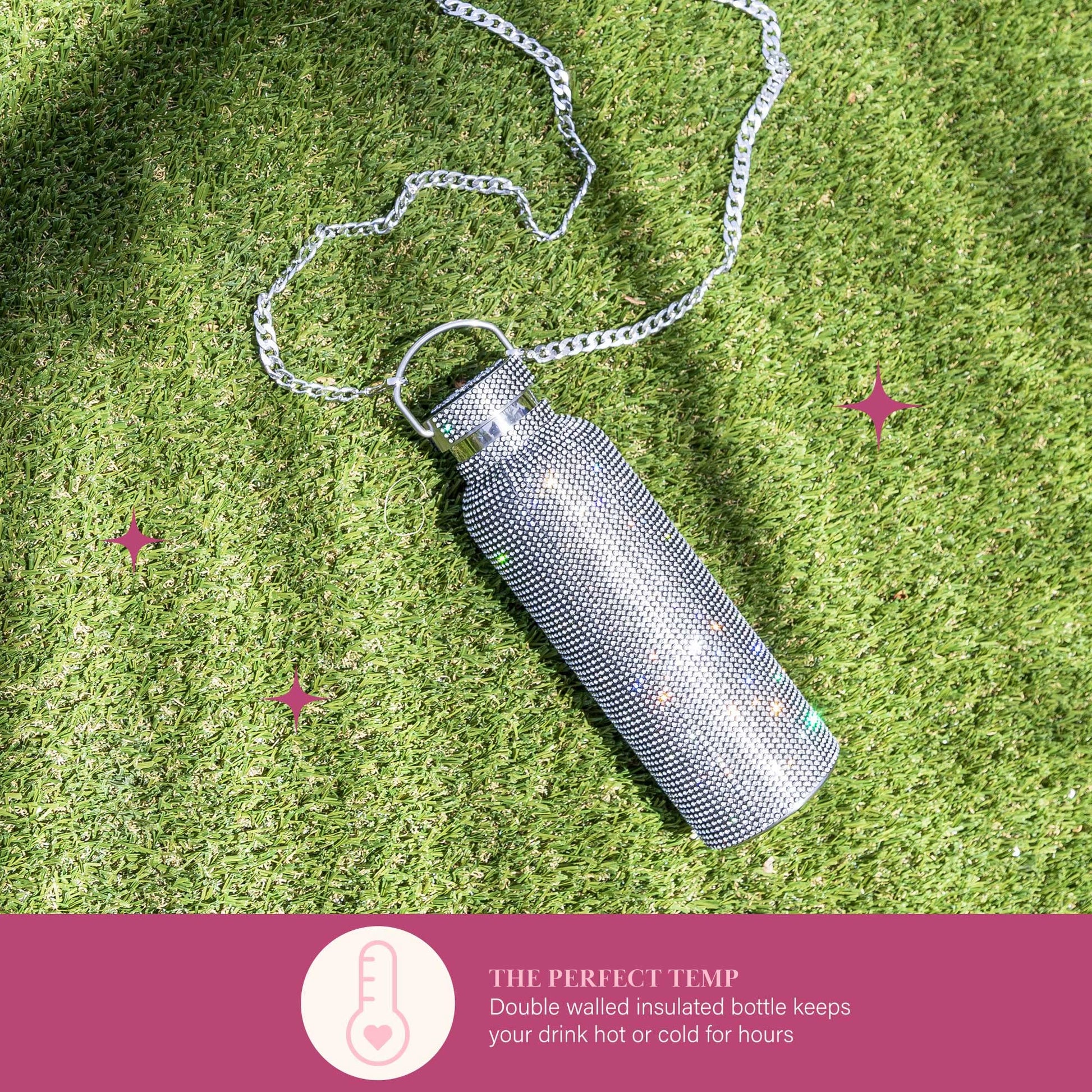 - SHINE ON: Bedazzled with over 5000 shimmering rhinestones, this epic water bottle is perfect for on the go. The leak-proof screw-on lid with integrated carry handle and removable carry chain will make sure you can sliv your best life. Perfect for everyday use and music festivals.