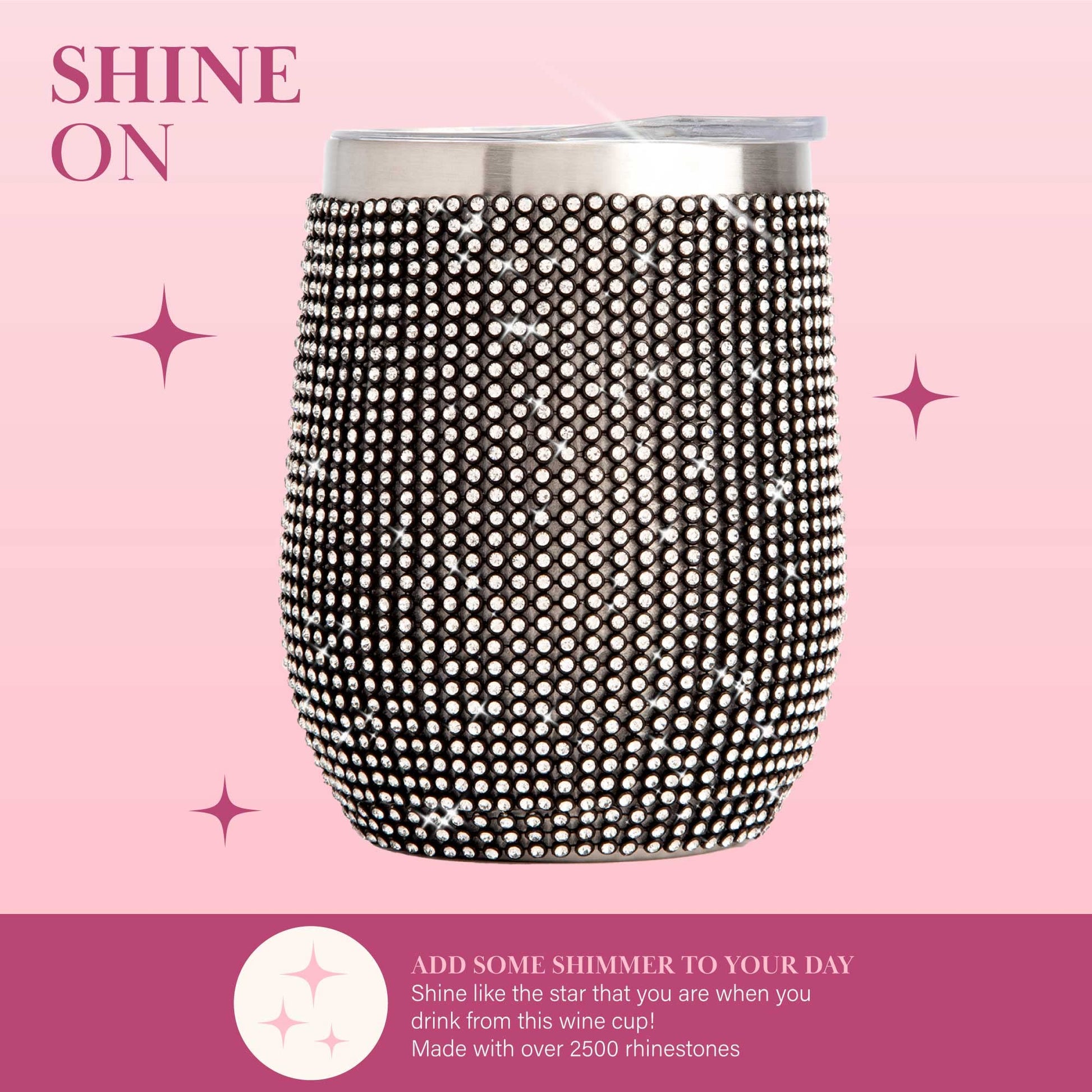 - SHINE ON: Bedazzled with over 2,500 shimmering rhinestones, this epic wine-to-go cup is perfect for everyday use or special occasions.