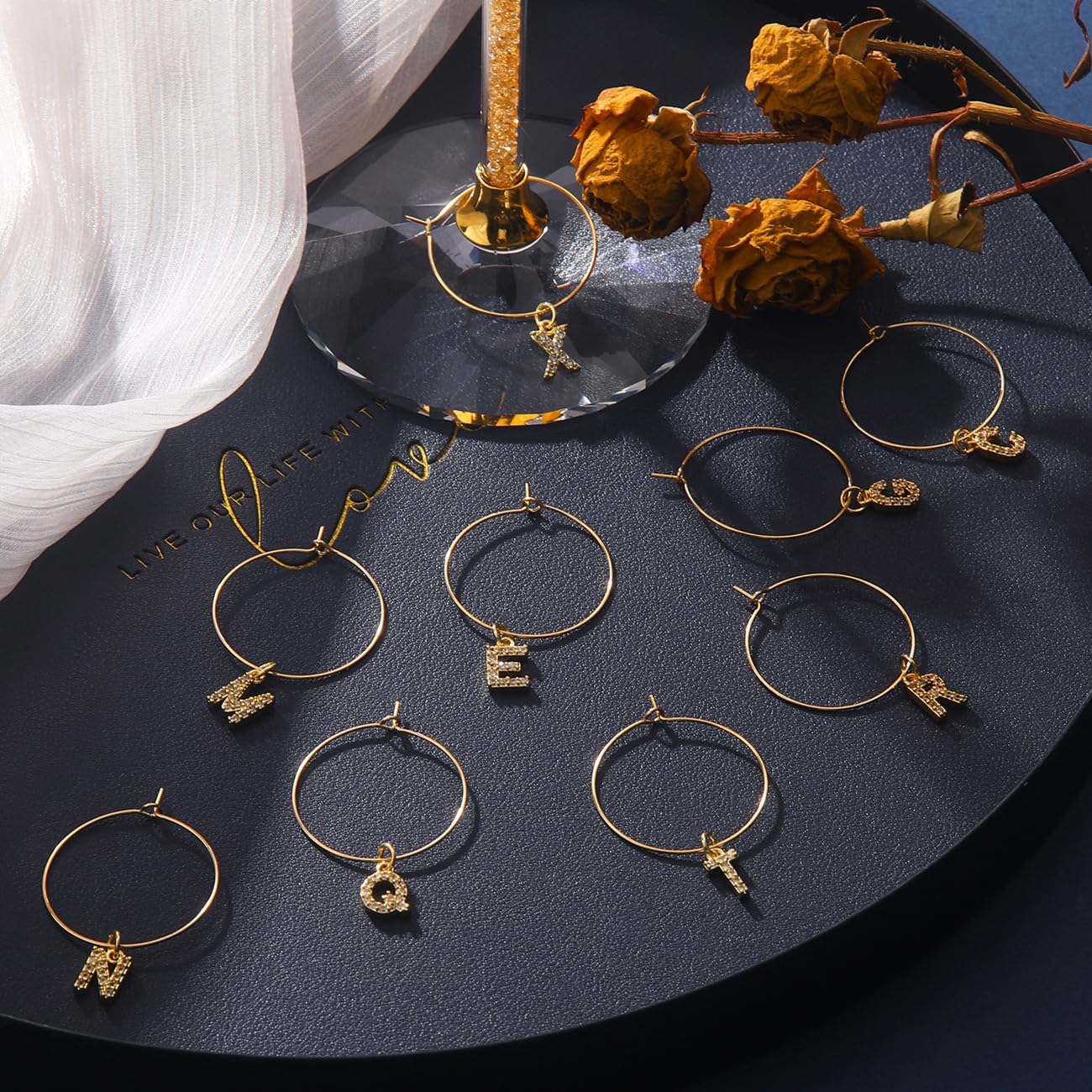 - Set of 26 Gold Rhinestone Letter Wine Glass Markers are made of classy alloy, light weight, delicate, durable, each one with a gold buckle ring