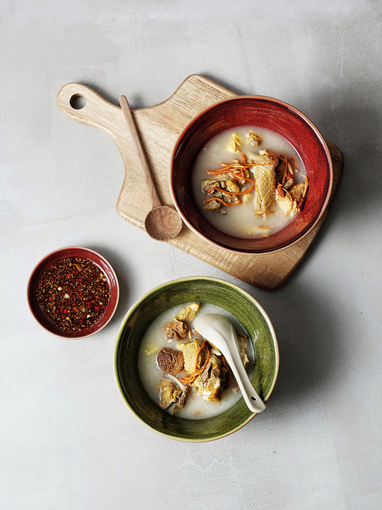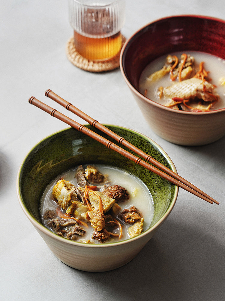 Color classification: 6.5-inch shaped rib noodle bowl-Maple Leaf red, 6.5-inch shaped rib noodle bowl-olive green