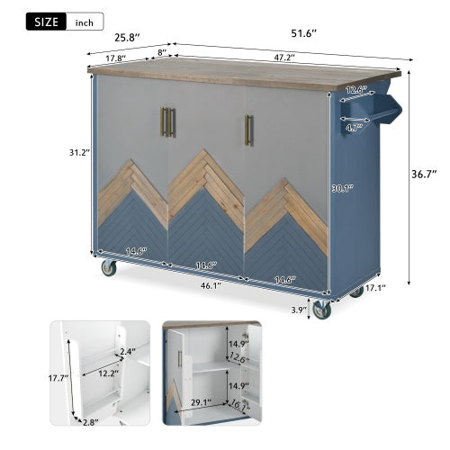 Product Name:Retro Mountain Wood 47"D Kitchen Island with Drop Leaf, Accent Cabinet with Internal Storage Rack, Farmhouse Rolling Kitchen Cart on Wheels for Living Room, Kitchen, Dining Room (Navy Blue)