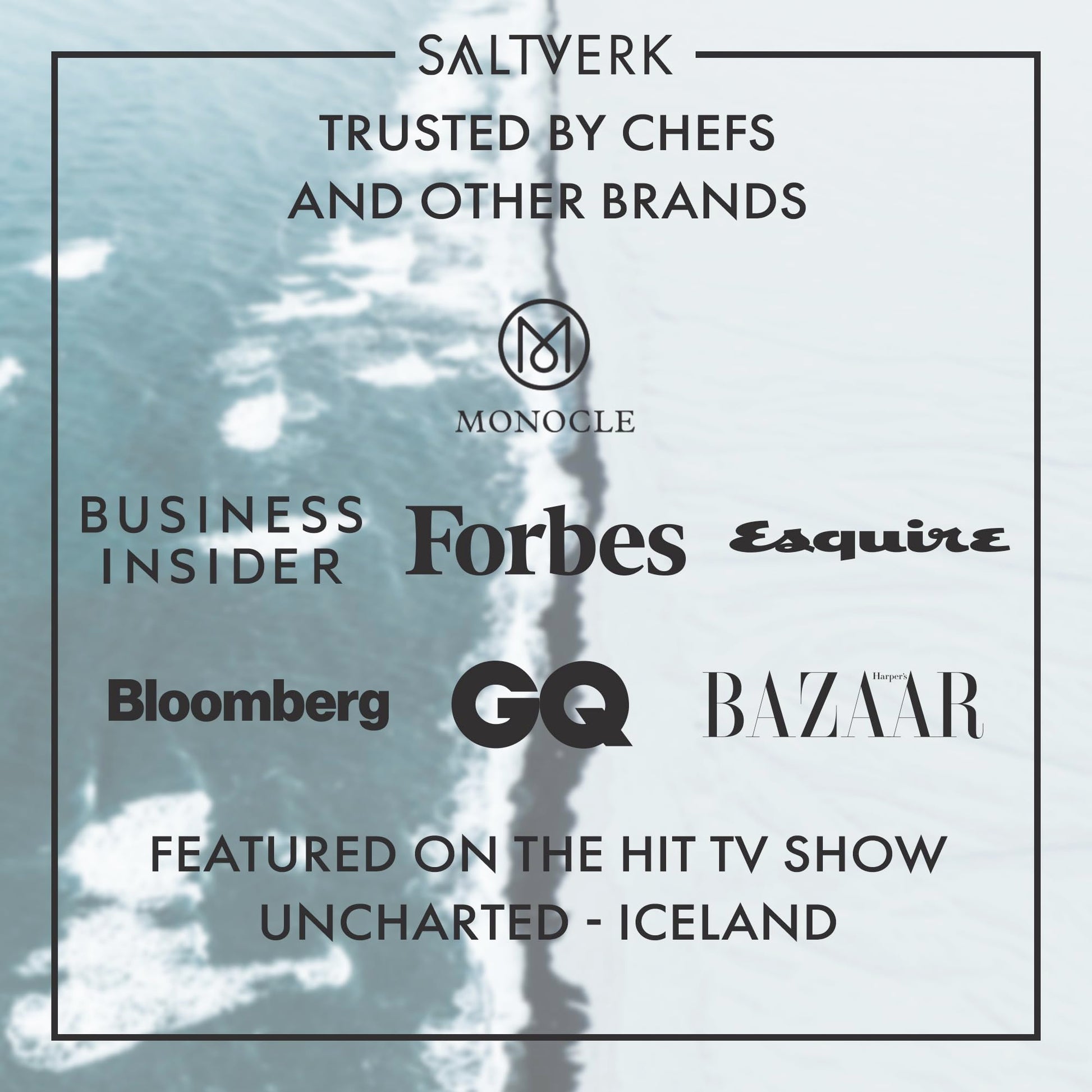 - TRUSTED CHOICE: Saltverk's Icelandic sea salt has gained recognition by being featured on the show 'Uncharted,' which premiered on National Geographic, making it a trusted choice used in the finest restaurants and homes around the globe.
