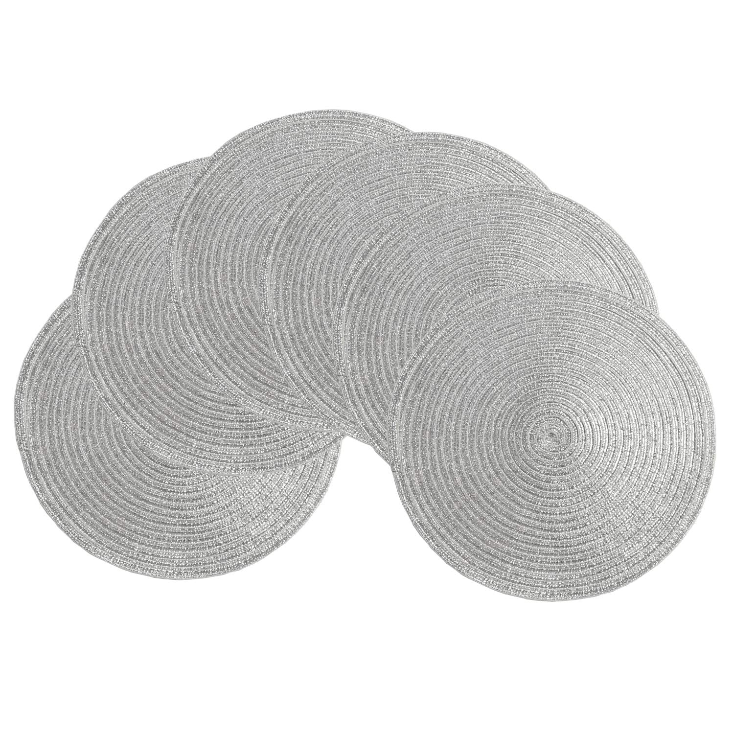SHACOS Glitter Round Braided Placemats Set of 6 Sparkle Bling Placemats Glitz Table Mats for Home Holiday Party Wedding Festive Table Decoration (6, Silver)