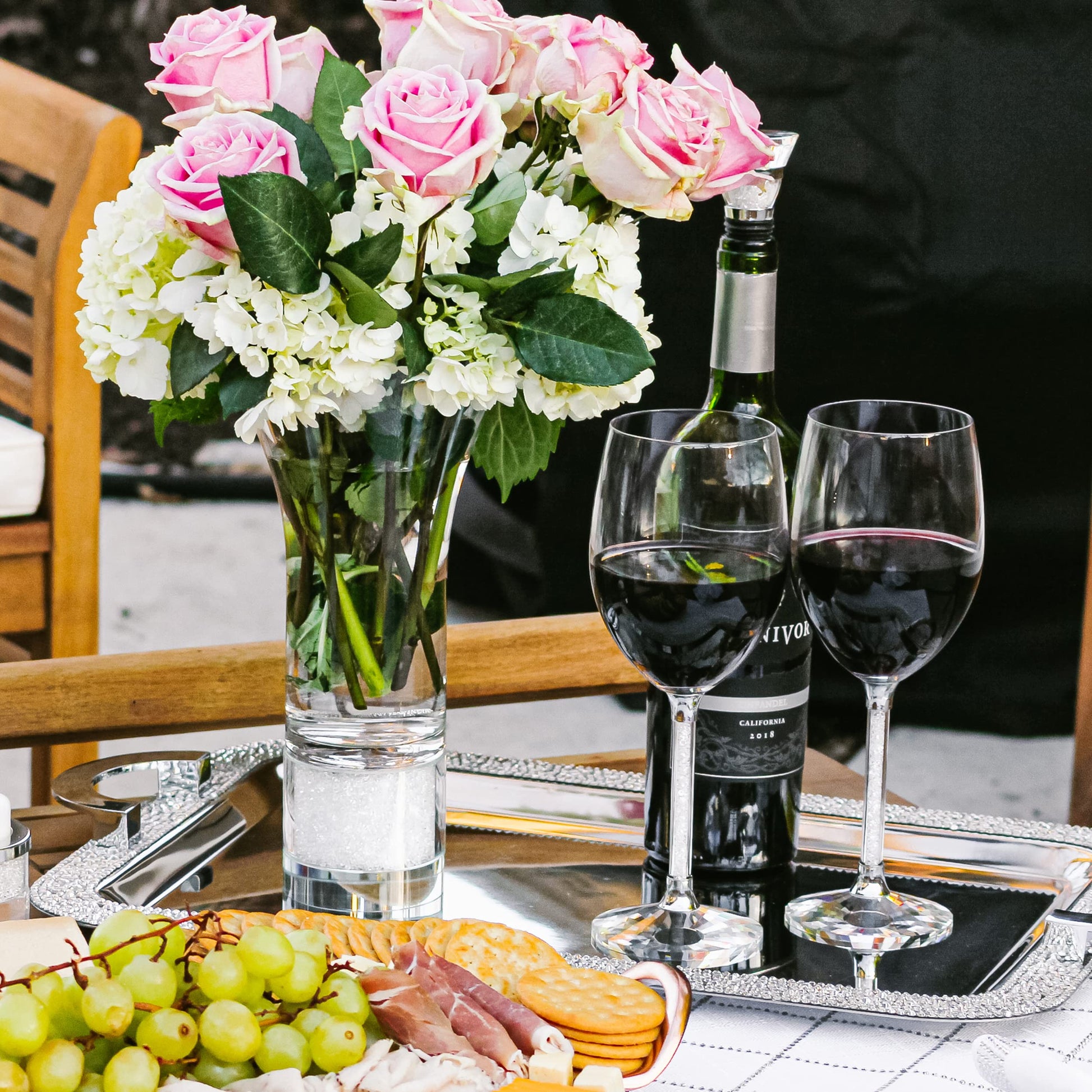 - DESIGN: Each wine glass is crafted from high-quality crystal with a faceted base that beautifully catches the light. The stem is filled with sparkling glass rhinestones, available in silver, gold, charcoal, or rose gold, adding a touch of luxury to your wine experience.