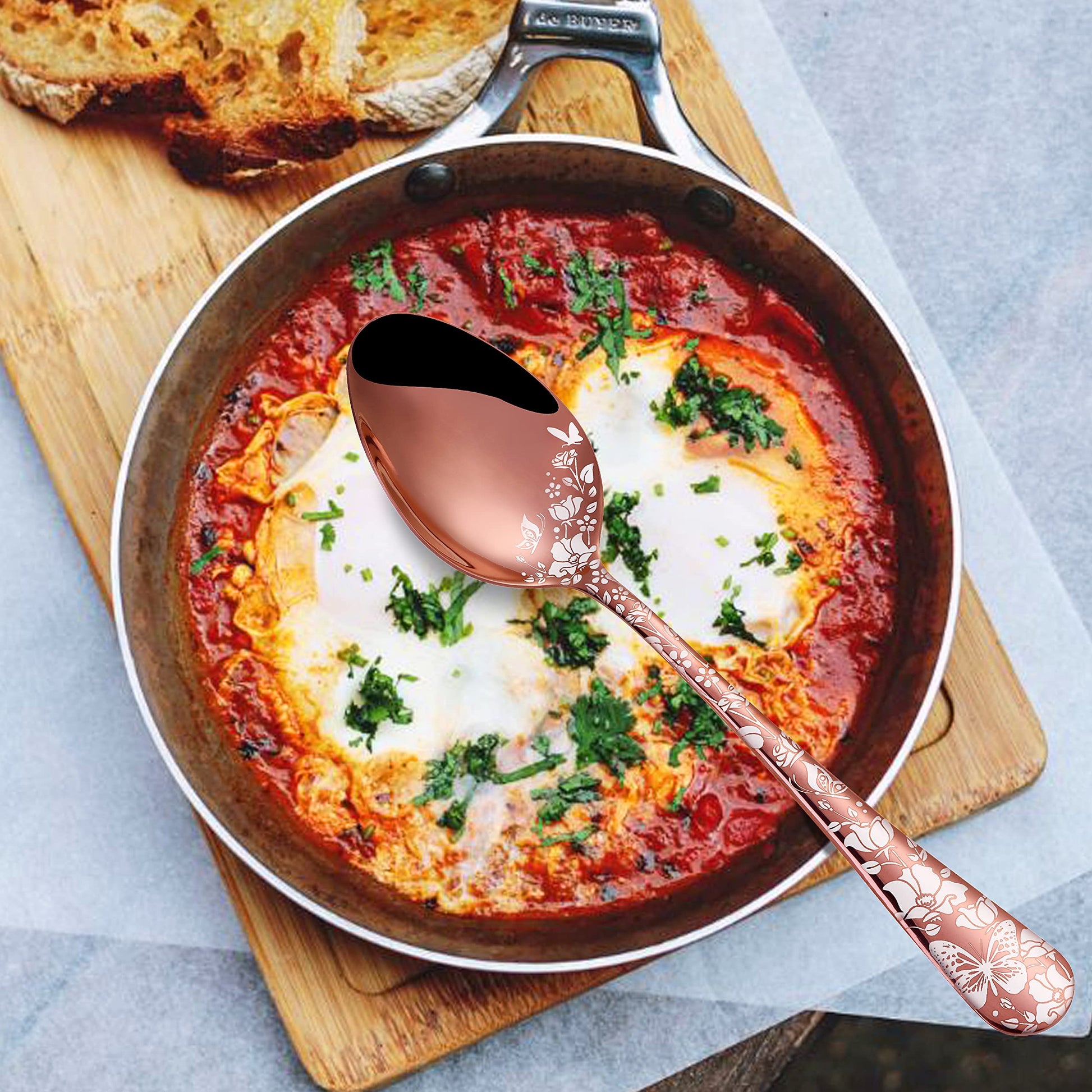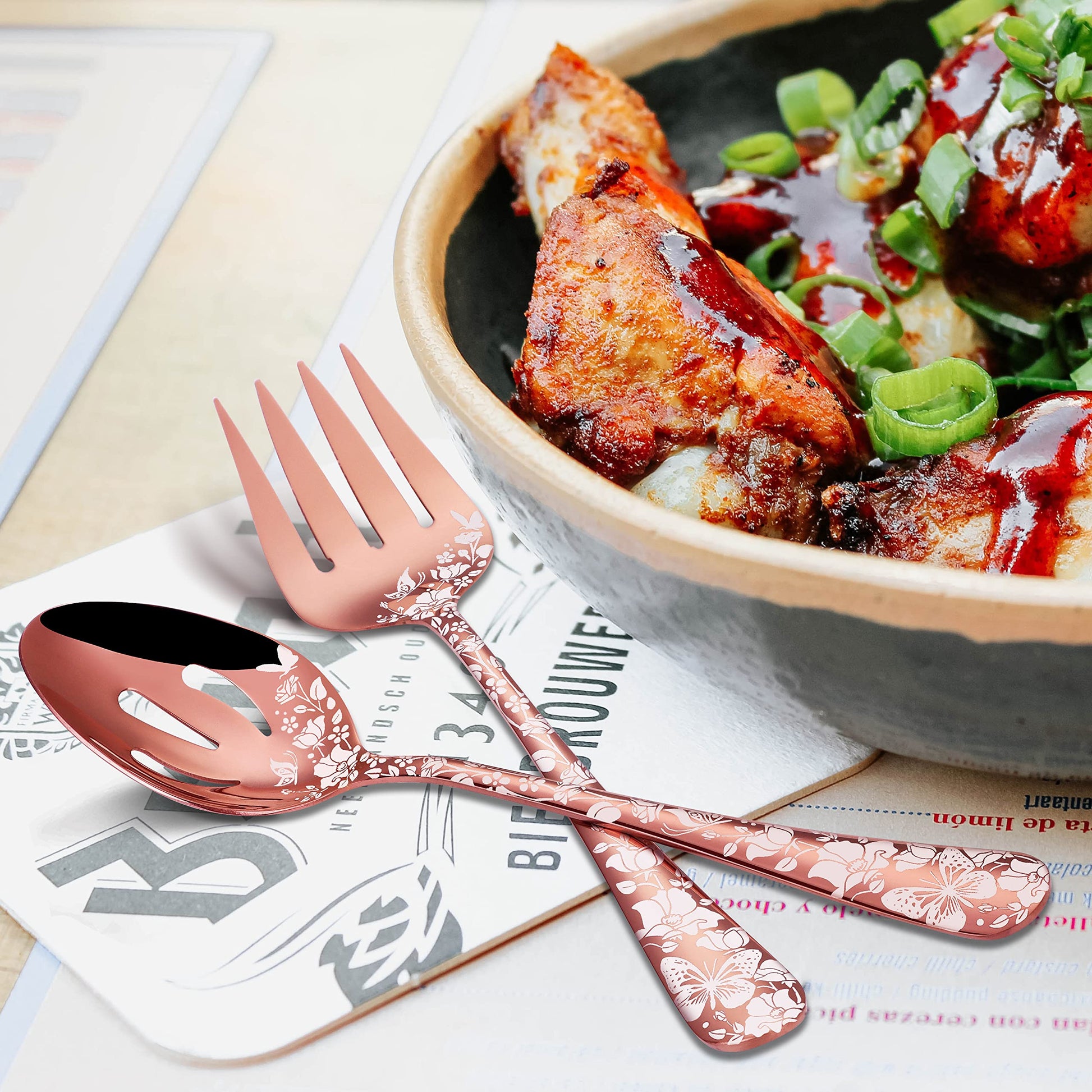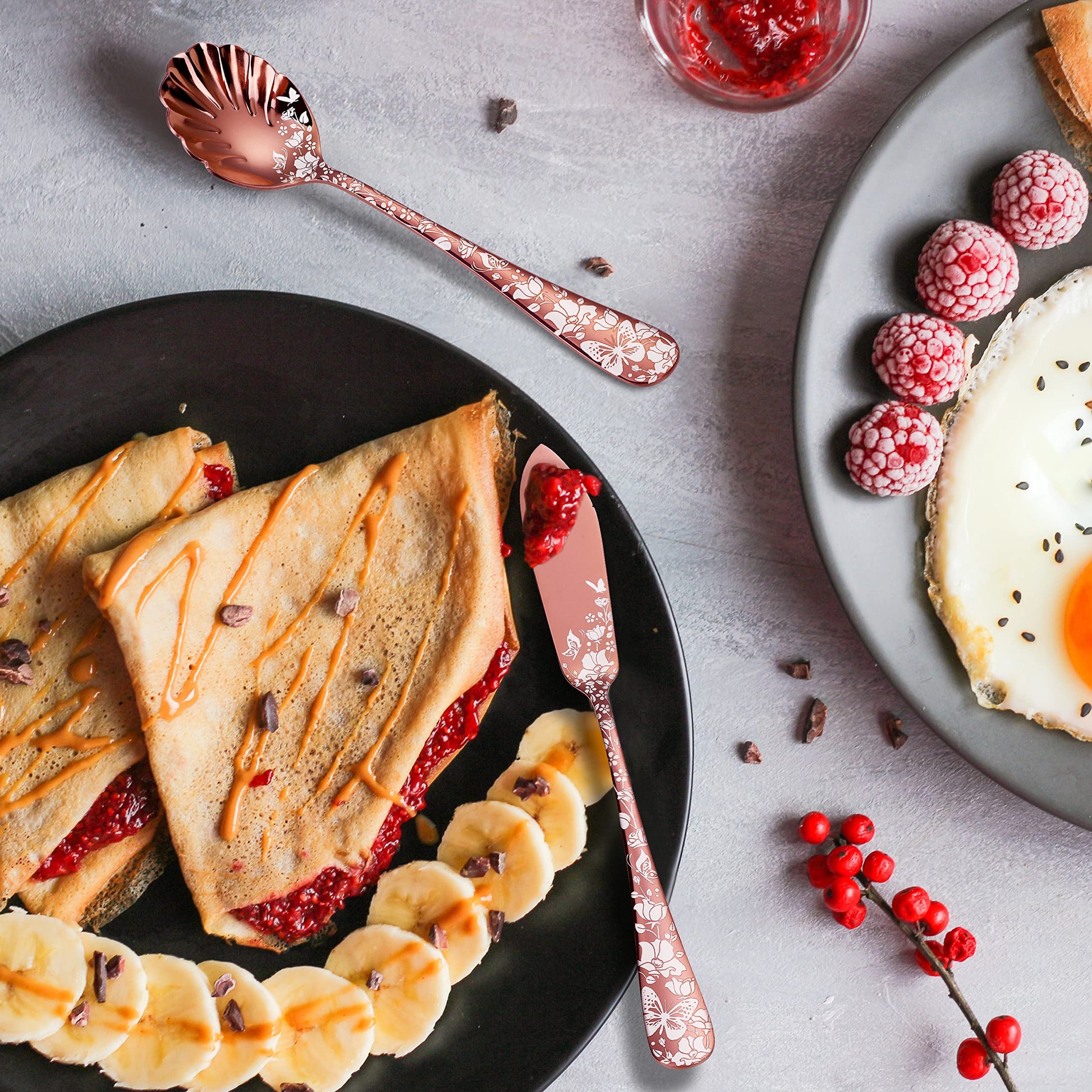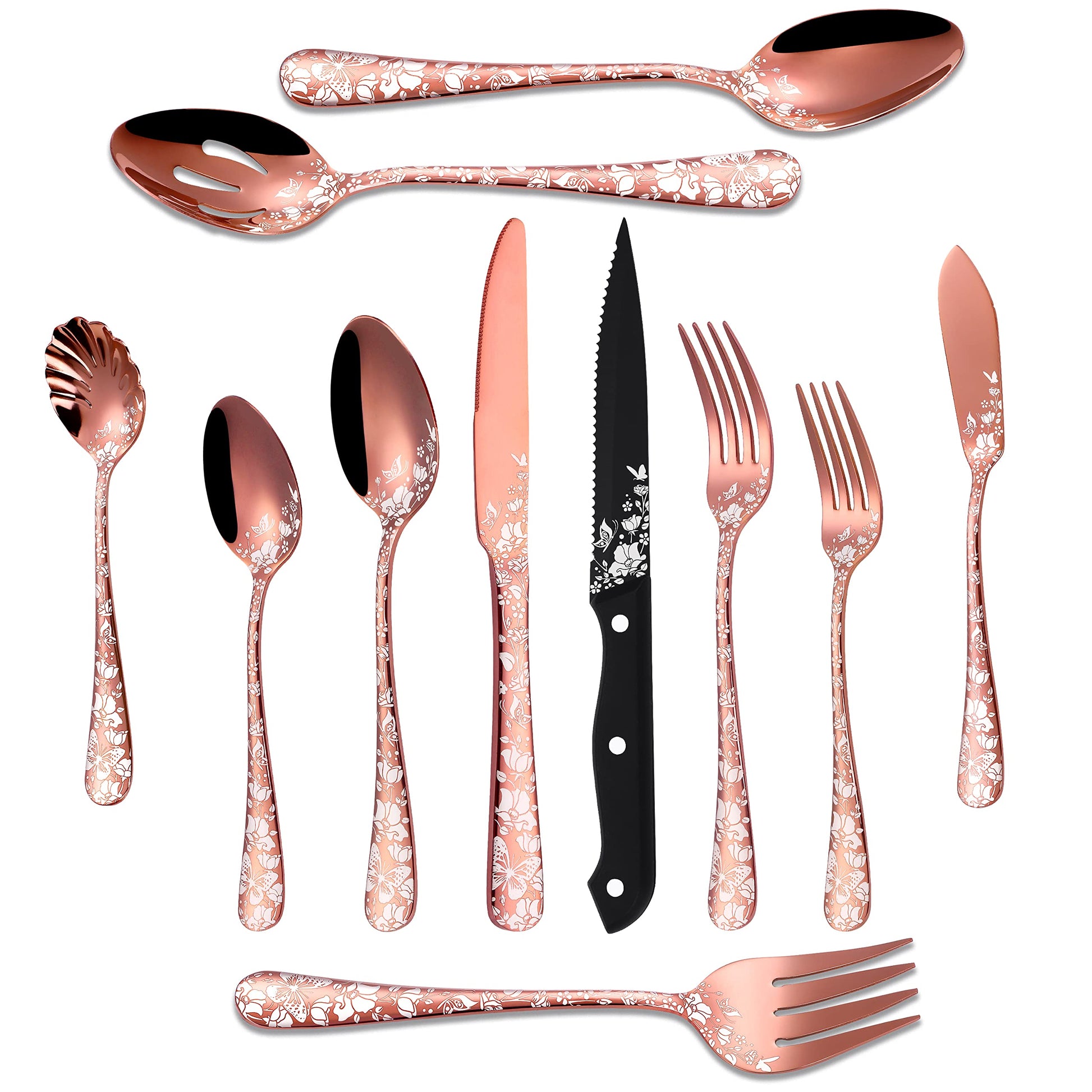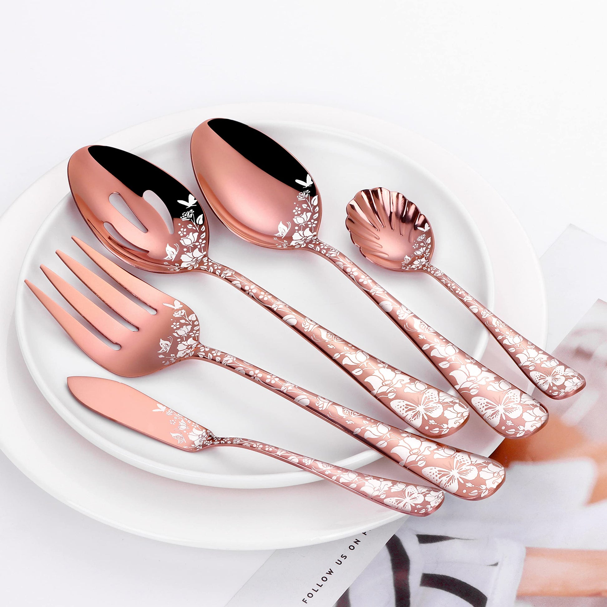 - Unique Pattern Design - Our silverware sets are designed with beautiful laser print of butterflies with flowers, unique styles make your dining table special, standing out from the ordinary tableware, stylish shape with rose gold finish, creates an elegant, noble and luxurious dining scenes.