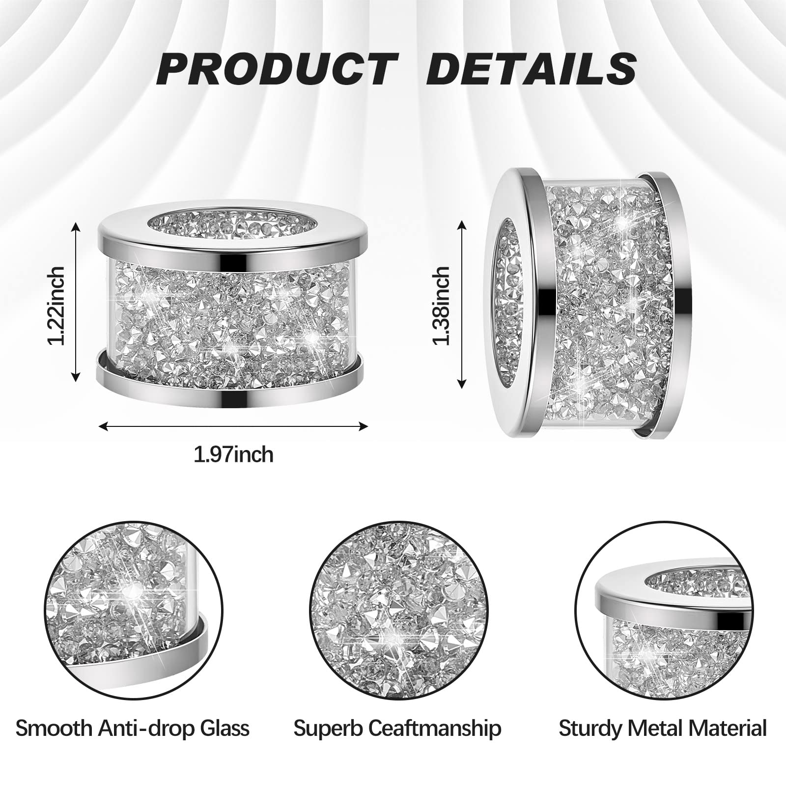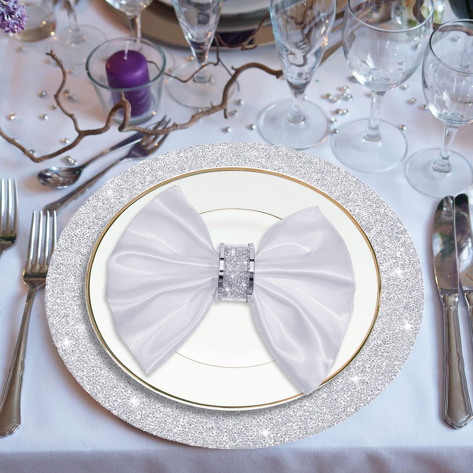 - Shinny Table Centerpiece: the silver bling napkin rings measure about 2 inch in diameter, 1.3 inch in height, and the crushed diamond wedding placemats are about 13 inch in diameter, proper size accompanying by glitter appearance will make it be an ideal centerpiece for your home