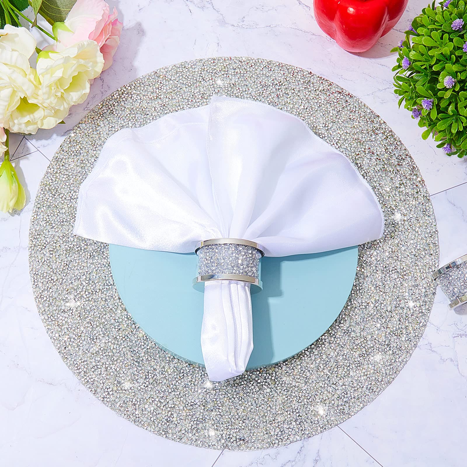 - Sturdy to Use: our bling napkin rings are made of quality glass and metal material, the rhinestone round table placemats are made of PV and rhinestone material, coming with exquisite appearance and shinny appearance, beautiful and practical, and you can use it for a long time