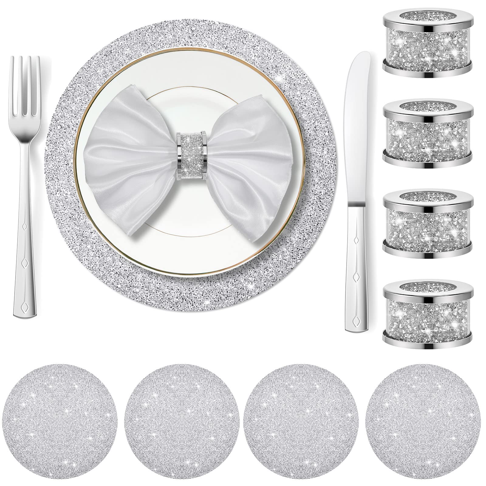 - Practical Decoration Sets: the package comes with 4 pieces of crystal silver napkin rings, and 4 pieces of glitter rhinestone placemats, 8 pieces in total, enough quantities are sufficient for meeting your daily use or party use and replacement demands