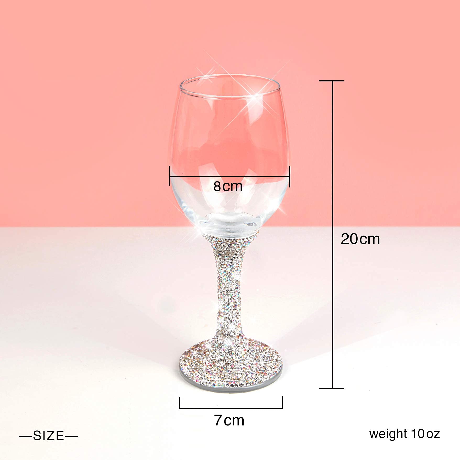 - Hand-Studded Elegance: Crafted from clear glass and quality rhinestones, our unique wine glass will maintain its elegance even in the long run. Our jeweled wine glasses are meticulously rhinestone studded by hand to make sure they stay securely in place, sip after sip.