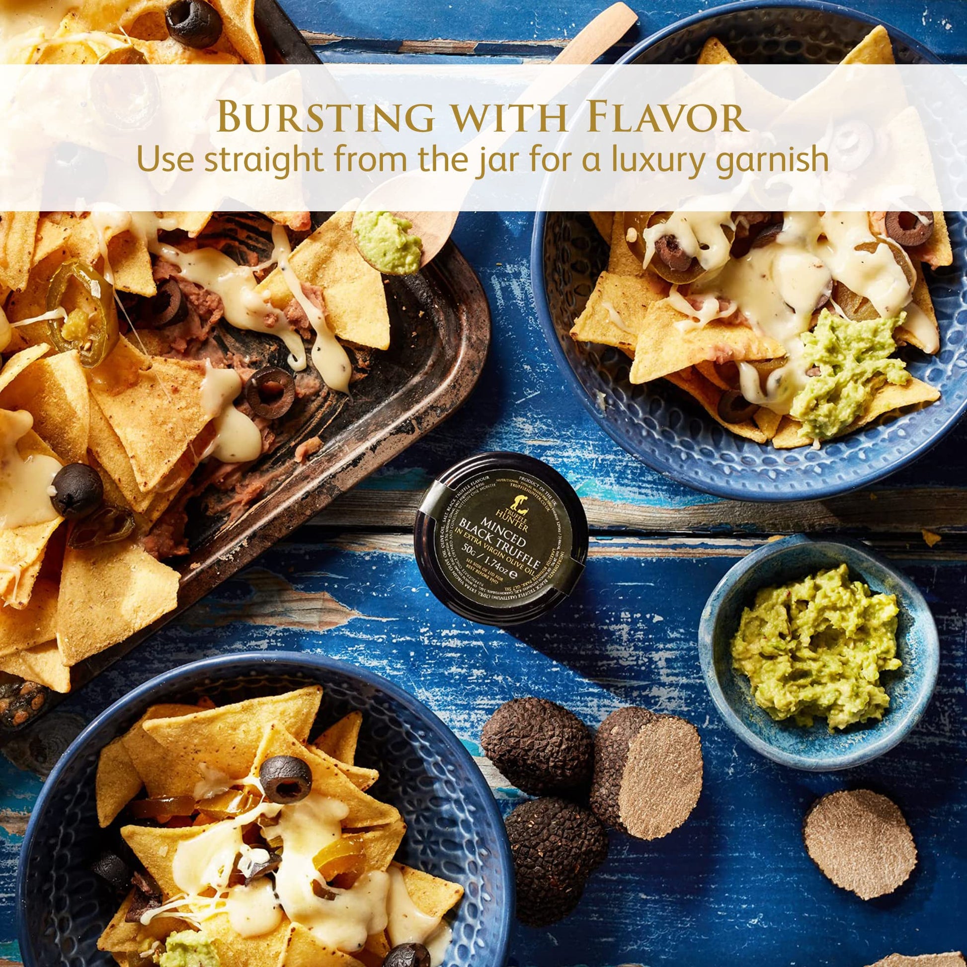 - MINCED TRUFFLES: TruffleHunter is delighted to introduce truffles to your kitchen! We mince black truffles and expertly preserve them with the highest grade olive oil available - extra virgin olive oil. Now, you can turn average recipes into delicacies