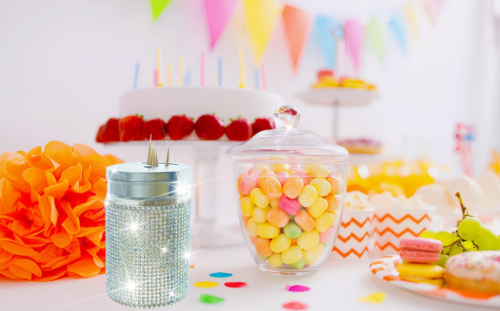 - 【Stunning Diamond Decor 】The glass bottle is adorned with sparkling diamonds, as if the entire starry sky is contained within this tiny toothpick holder. These diamonds gleam brilliantly in the sun, adding a touch of glamour and fashion to your home and making your living space shine with a unique radiance.