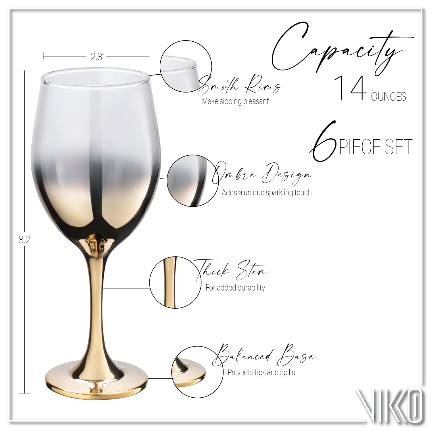 Vikko Décor Gold Ombre Wine Glasses: 14 Ounce Fancy Wine Glasses With Stem for Red and White Wine – Thick and Durable – Dishwasher Safe Goblets – Great Gift Idea – Set of 6 Decorative Wine Glasses…