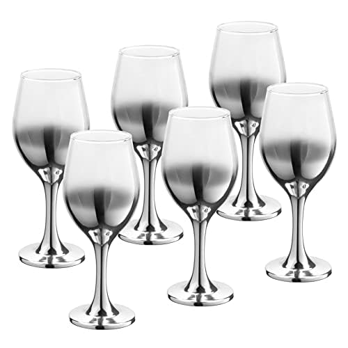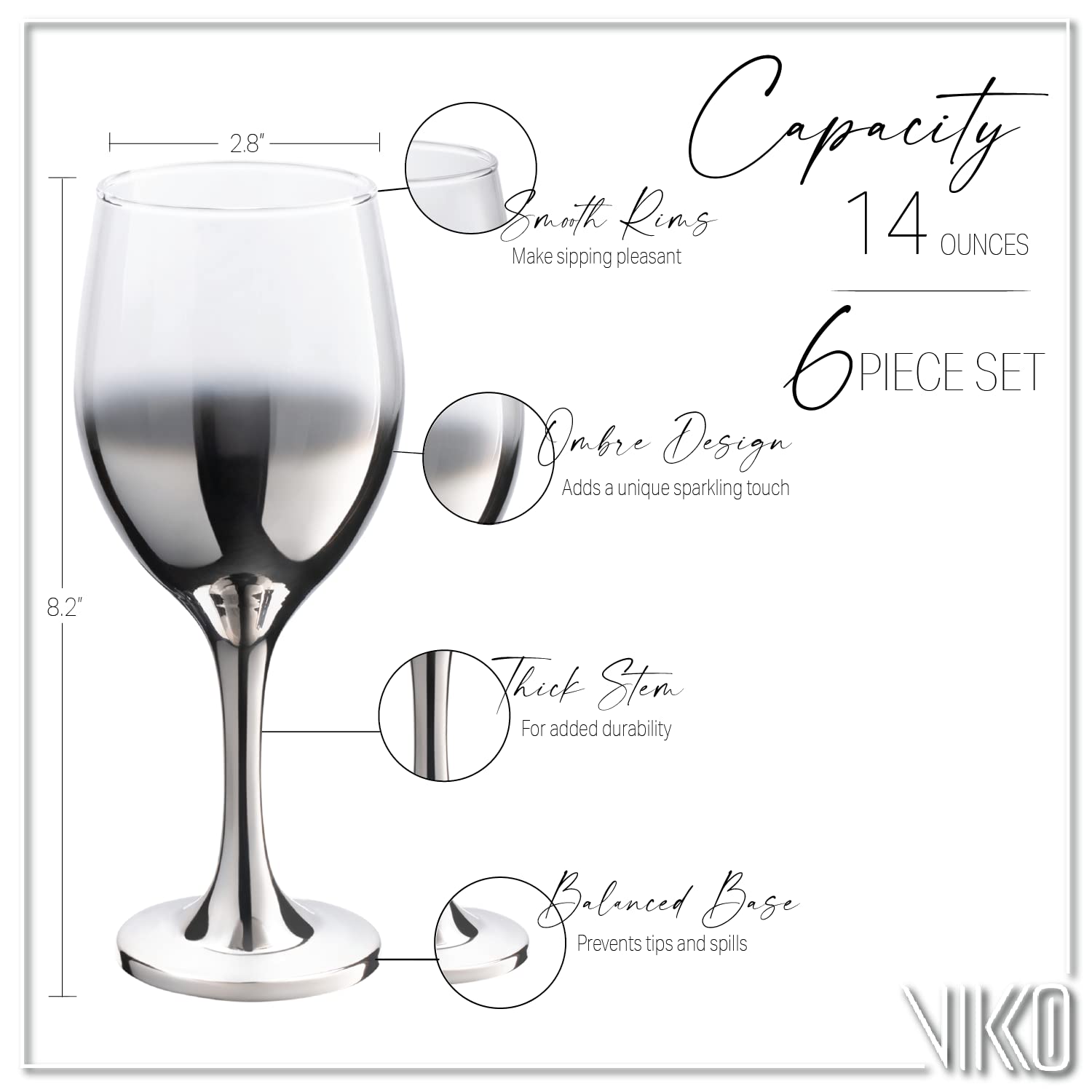 Vikko Décor Silver Ombre Wine Glasses: 14 Ounce Fancy Wine Glasses With Stem for Red and White Wine – Thick and Durable – Dishwasher Safe Goblets – Great Gift Idea – Set of 6 Decorative Wine Glasses