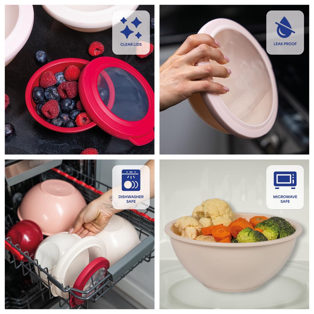 WHYSKO Mixing Bowl Set, 12 Piece Colorful Plastic Mixing Bowls with Lids Set for Food Prep Storage and Serving, Dishwasher Safe Microwave Safe for Kitchen Baking Cooking