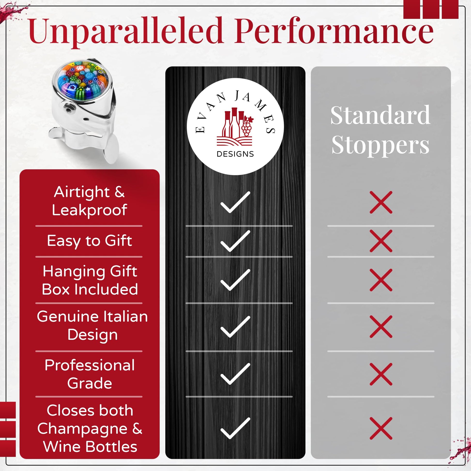 - Masterfully Crafted – Luxury wine accessories and gifts that last are the Evan James Designs legacy. Place your wine bottle stopper evenly on your bottle, press, and seal to elevate your wine experience.