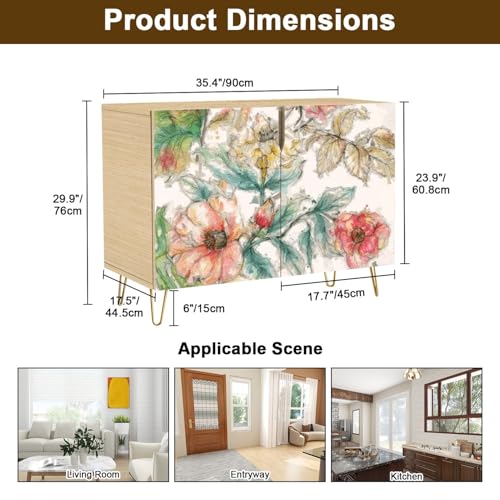 Mid-Century Sideboard Buffet Kitchen Storage Cabinet with 2 Doors Beautiful Oil Flower Cupboard Console Table Bar Cabinet for Dining Room Hallway