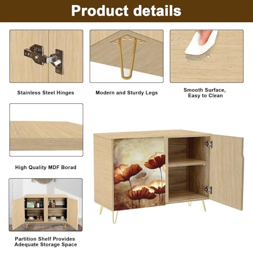 - CONTEMPORARY DESIGN: Simple designed metal legs not only offers a minimalist look for the accent furniture, but also elevated the cabinet makes it easy to clean the bottom floor. With 2 doors, this cabinet not only shows your great taste of decorating, but also offers plenty of hidden storage, protects your privacy. Our sideboards cabinet combine aesthetics and practicality, and we got various style for you to choose from. Pattern customization supported.