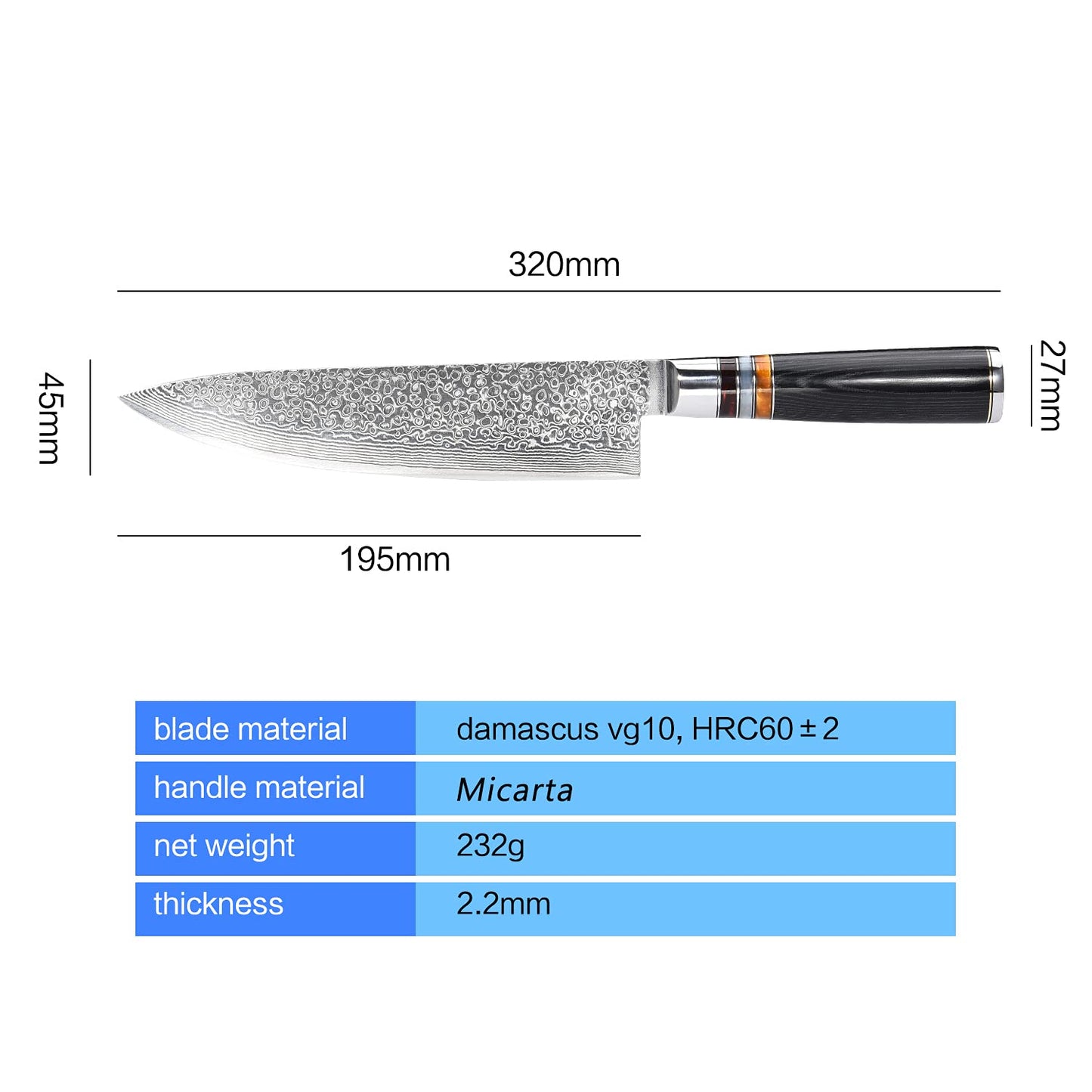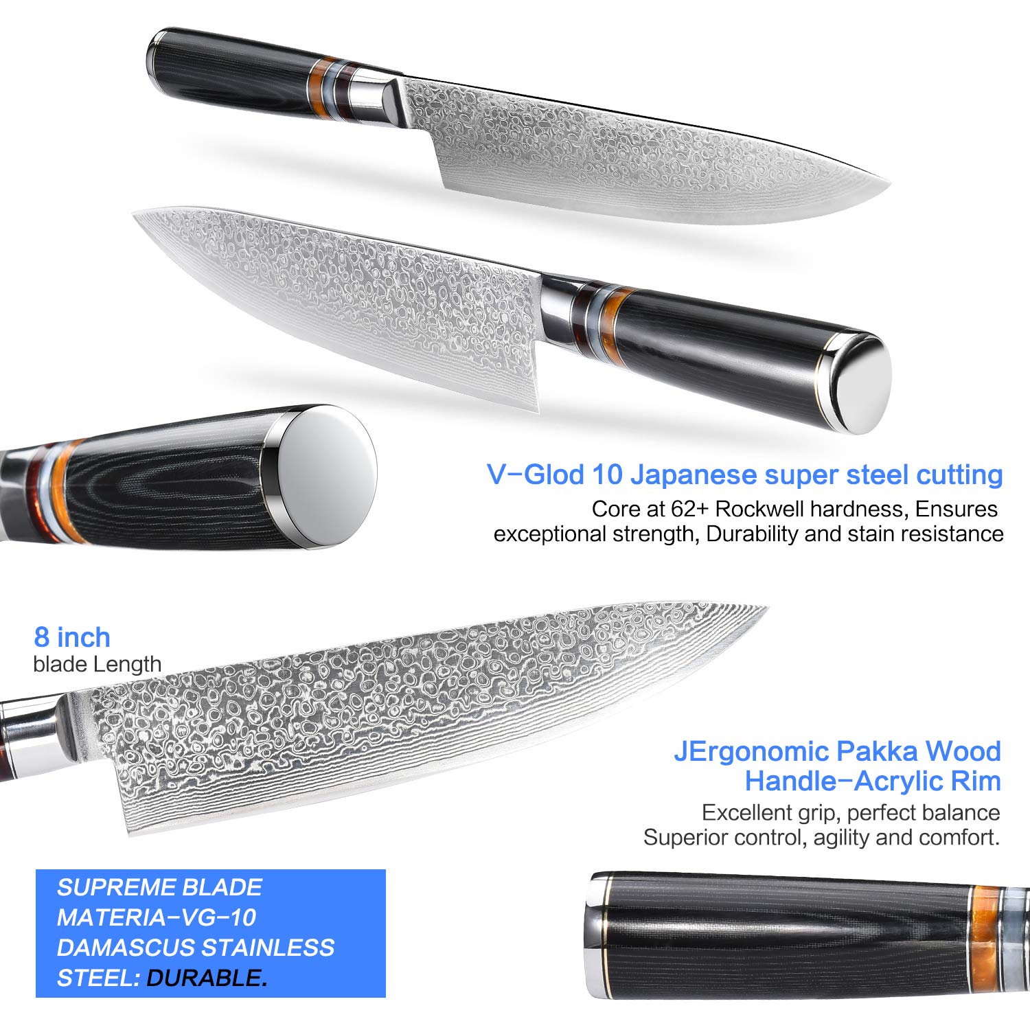 Yaiba Chef Knife 8-Inch Damascus Japanese Knife VG10 Stainless Steel, Razor Sharp Kitchen Cooking Knife with Ergonomic Handle